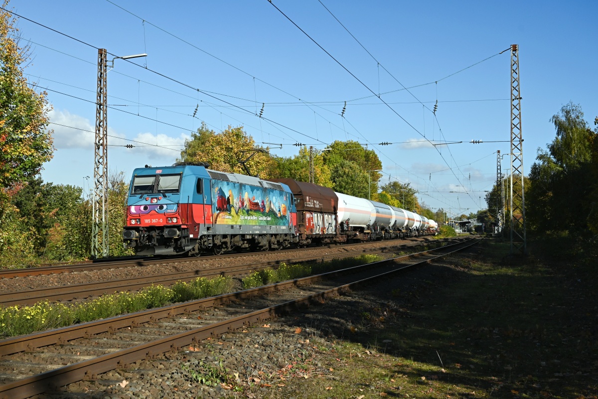 Dto. 185 367-0 am 18.10.2022 im Bückeburger Bahnhof (HBKB) mit dem EZ
