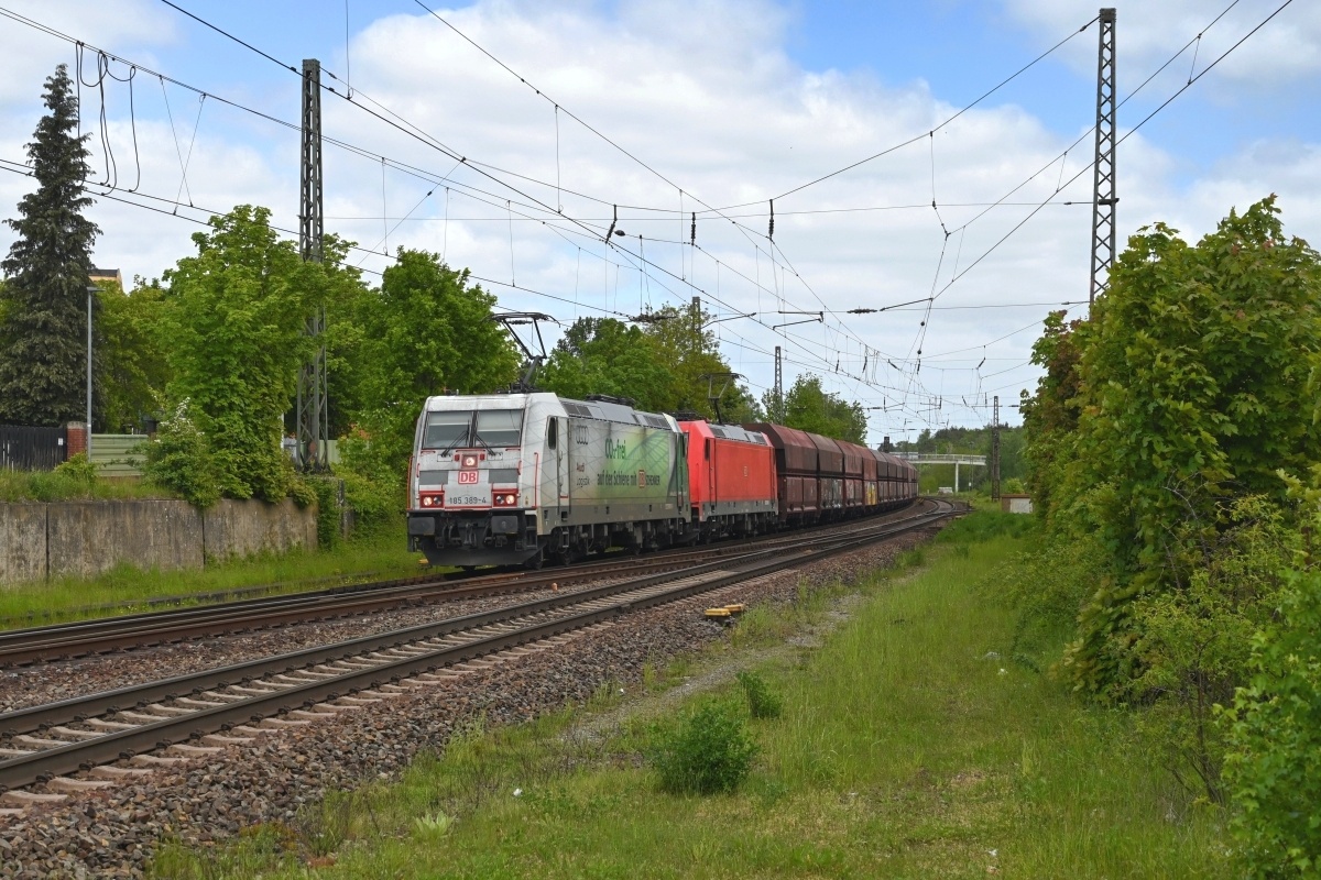Dto. 185 389-4 am 17.05.2023. Hier passierte die Lok den Bf Burgdorf (HBGD)