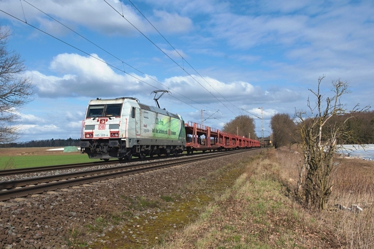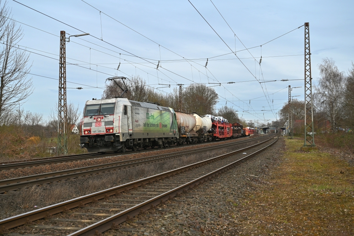 Dto. 185 389-4 am 17.03.2023 im Bückeburger Bf (HBKB) mit dem EZ 51204 von
