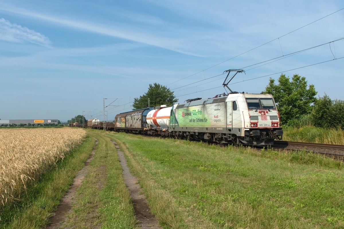 Dto. 185 389-4 am 10.07.2021 bei Altheim (FAT) Fiege mit dem EZ 51893 von