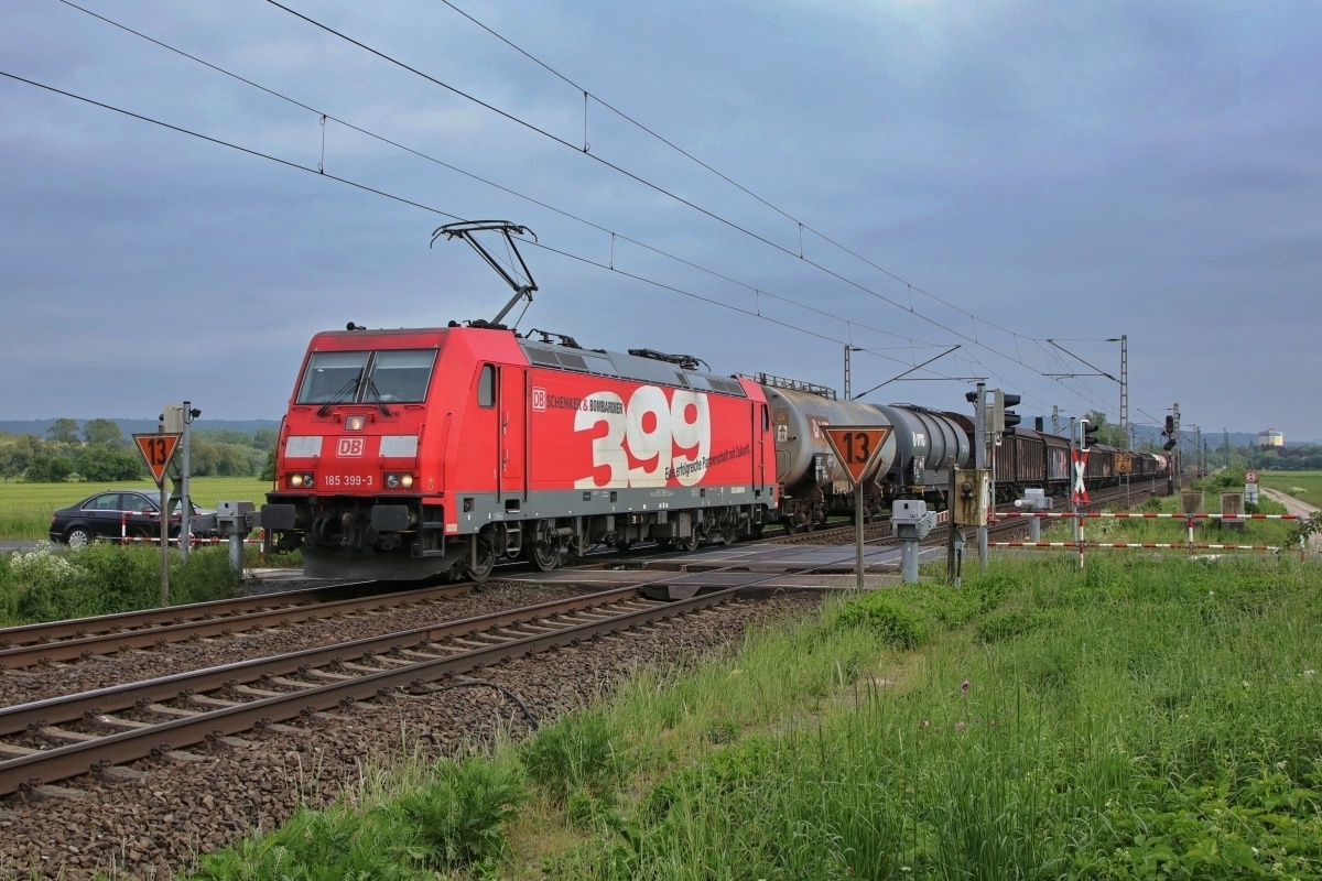 Dto. 185 399-3 am 18.05.2018. Hier passierte die Lok den Bü 239.6 bei