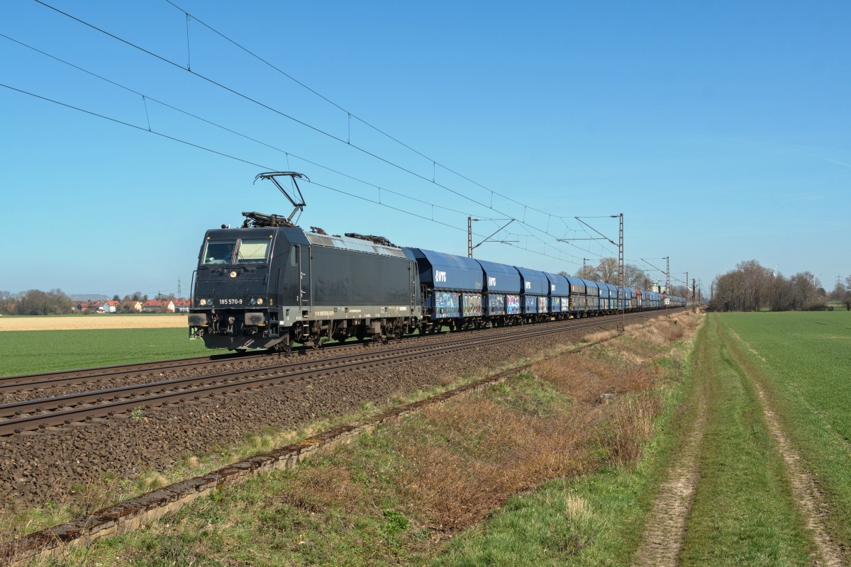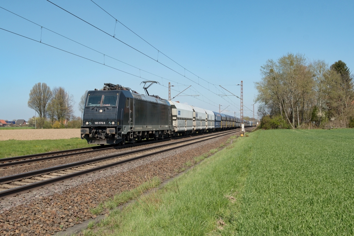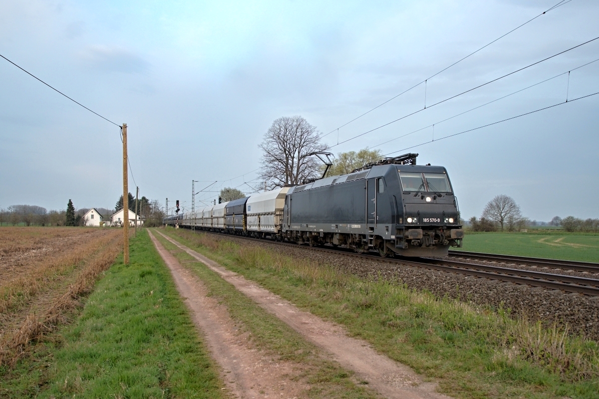 Dto. 185 570-9 am 30.03.2021 bei Lindhorst (HLH) Vornhagen mit dem