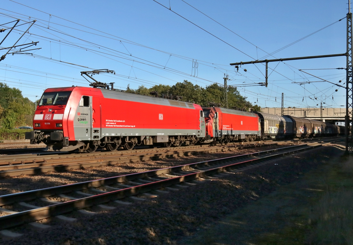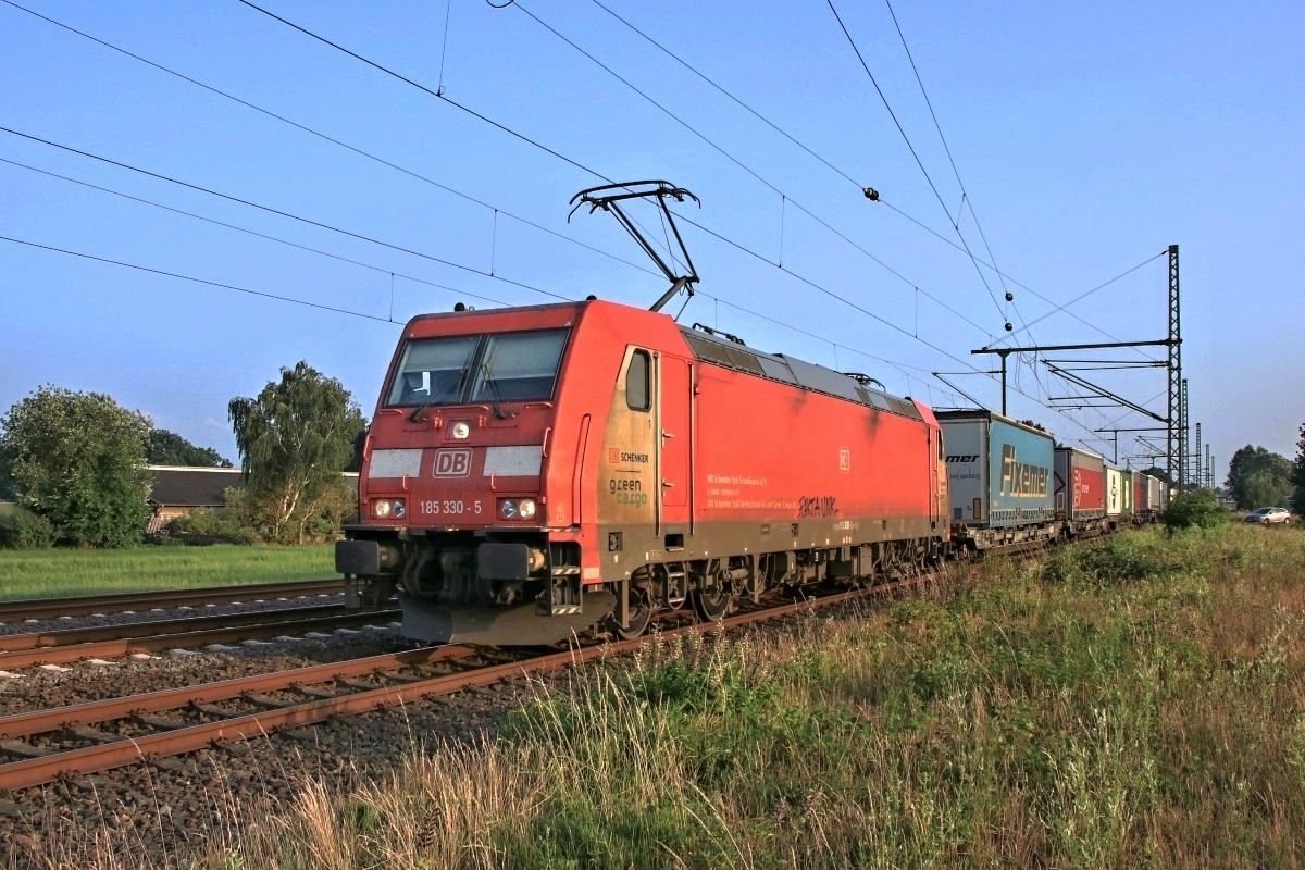 185 324-8 DK-RSC) passierte hier am 30.08.2016 Meckelfeld mit einem CT-Zug nach Dänemark...