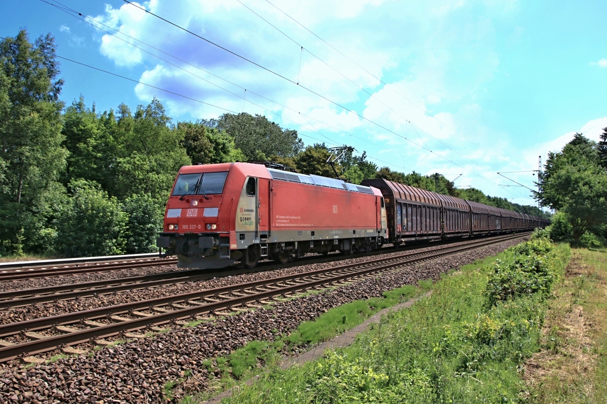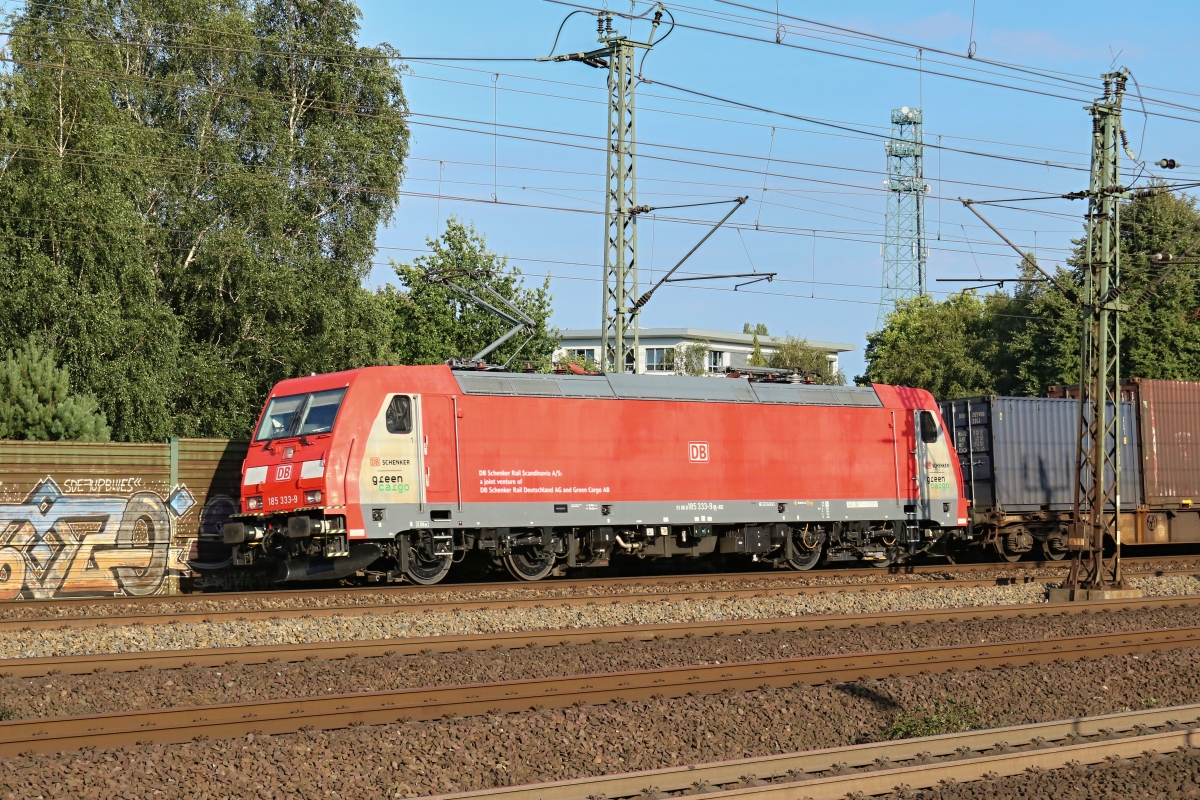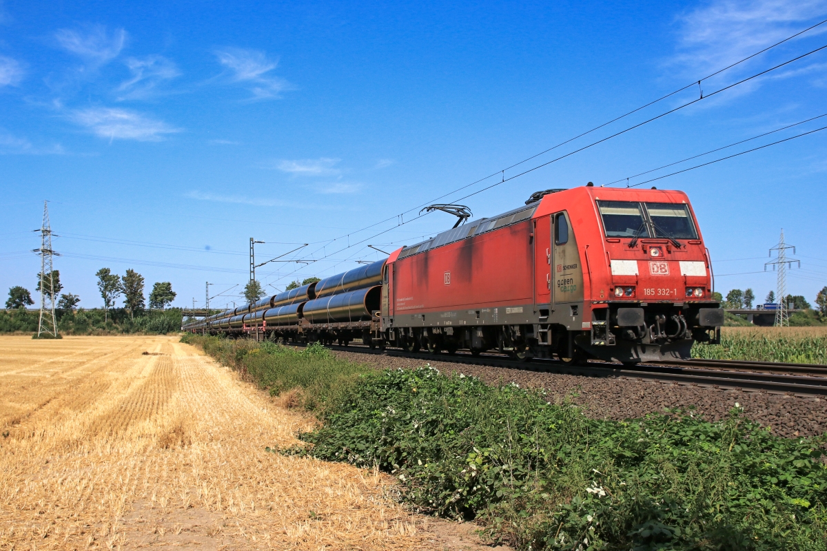 Dto. 185 332-1. Hier war die Lok am 26.07.2018 bei Minden-Dankersen mit einemRöhrenzug