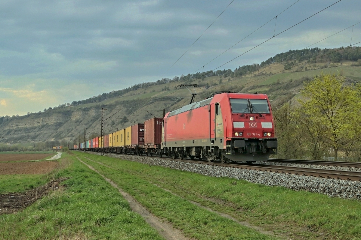 "green CARGO" - DB SCHENKER passierte hier am 10.04.2018 Thüngersheim mit