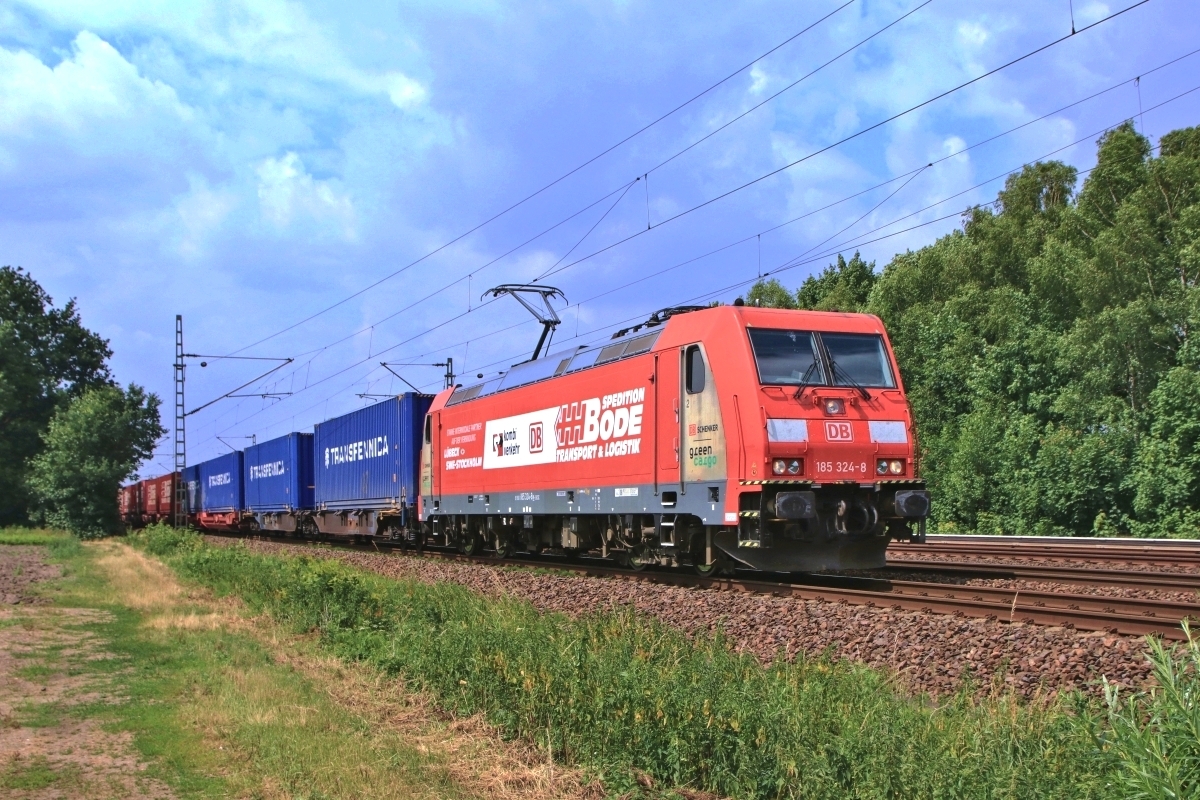Dto. 185 324-8. Die Lok war hier mit der Werbefläche "Bode" und