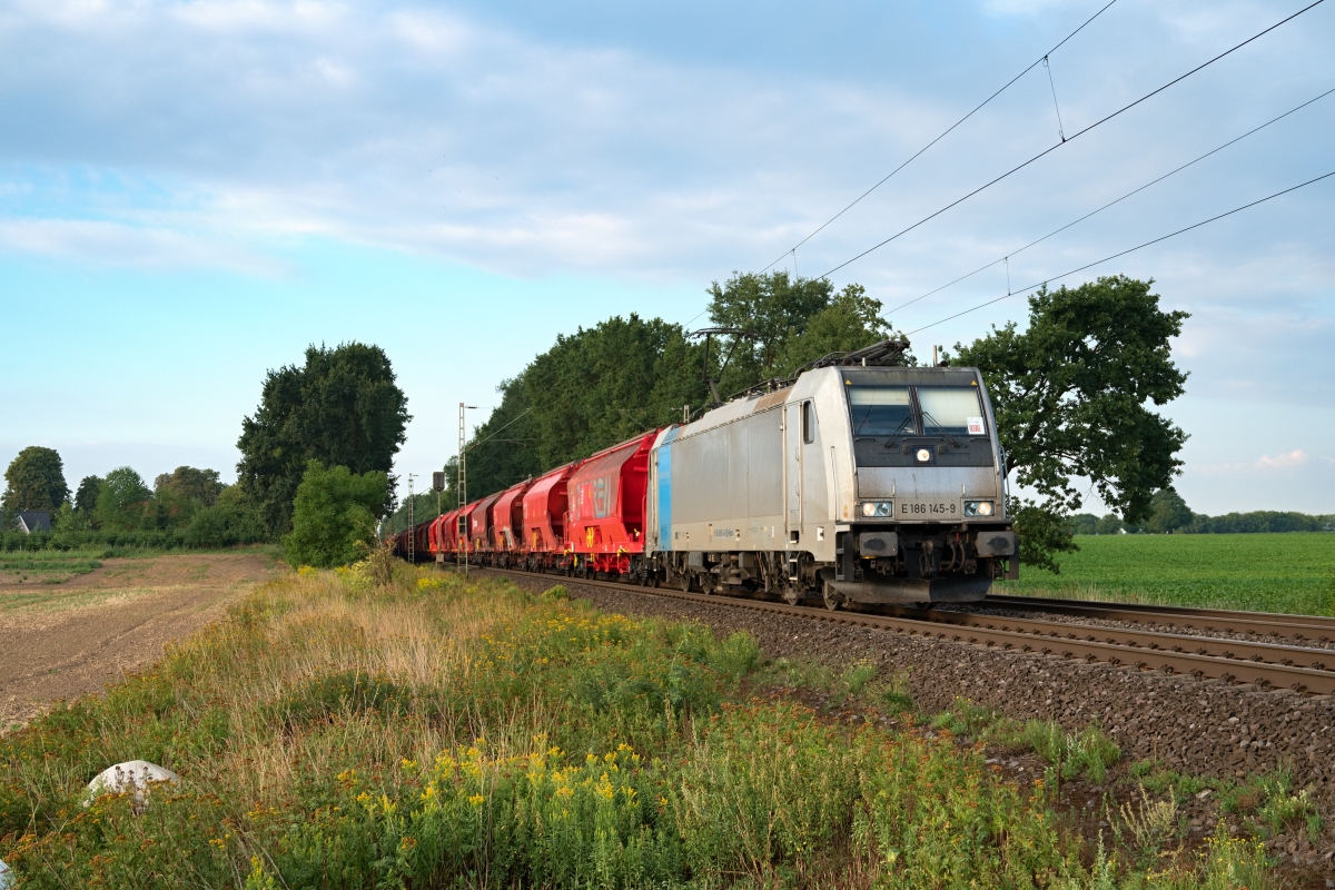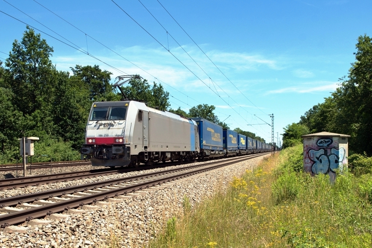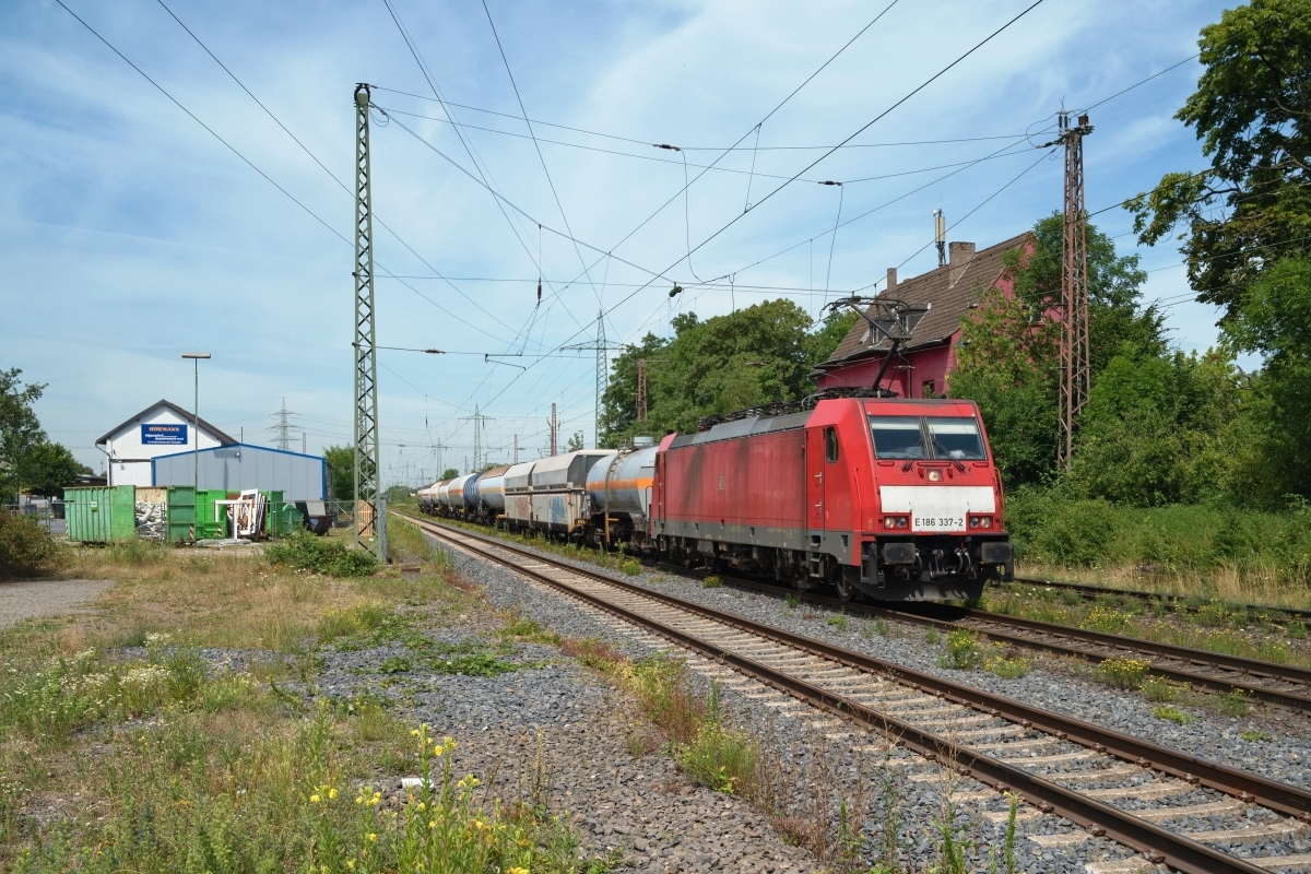war hier am 19.07.2019 bei Böhl-Iggelheim (RBOE) mit Wagenlok 186 336-4
