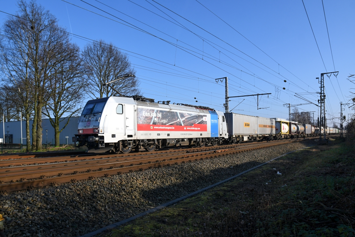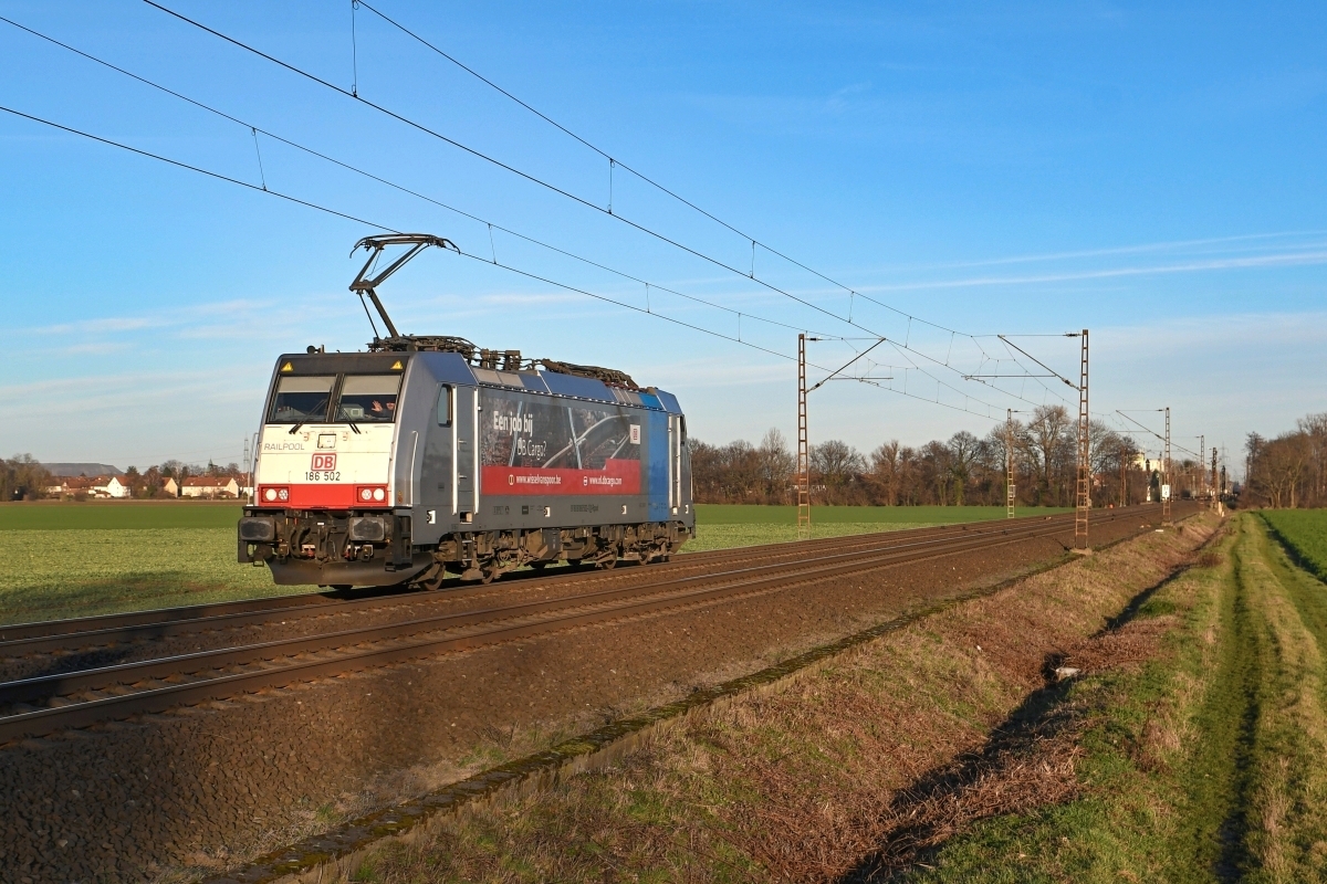 Dto 186 502-1 als Tfzf am 05.02.2020 "kurz vor Licht aus" bei Lindhorst-Vornhagen mit der