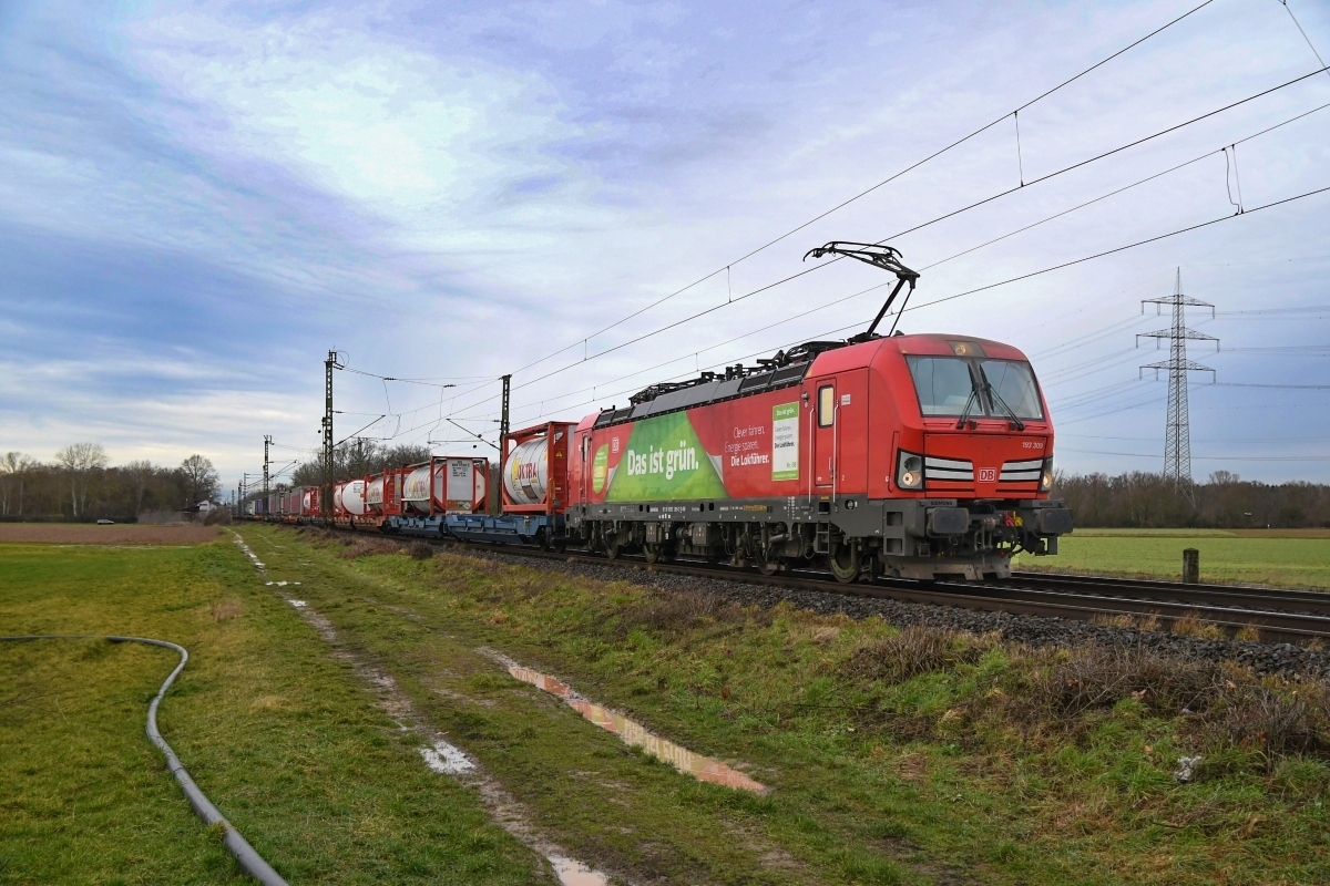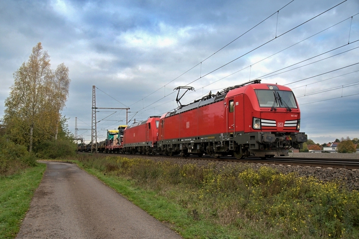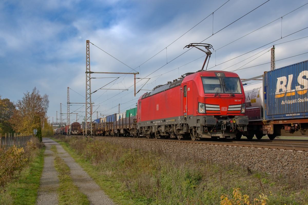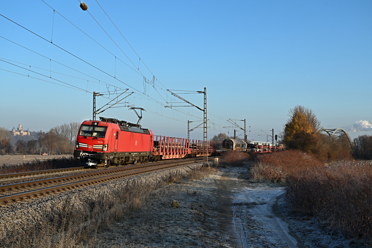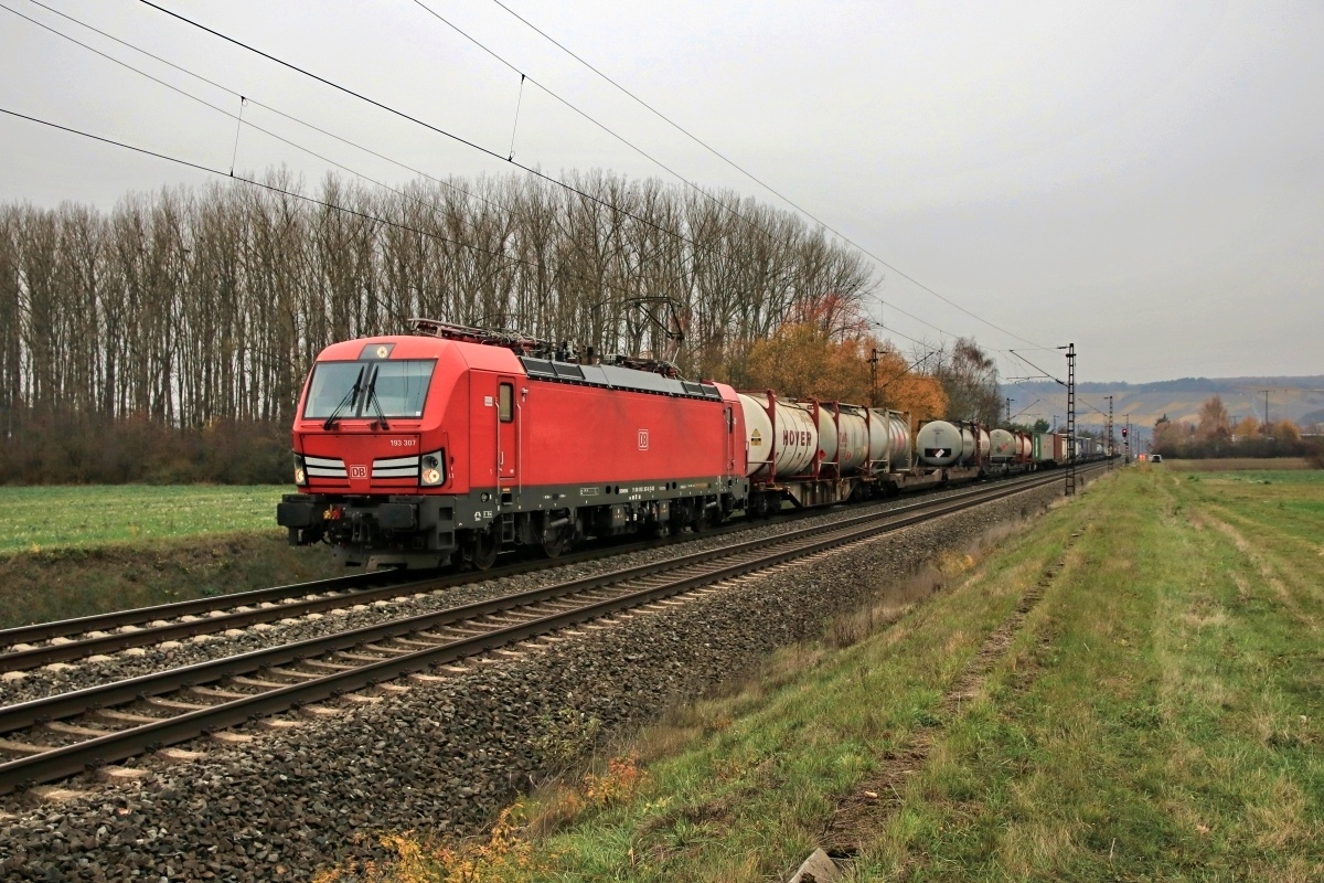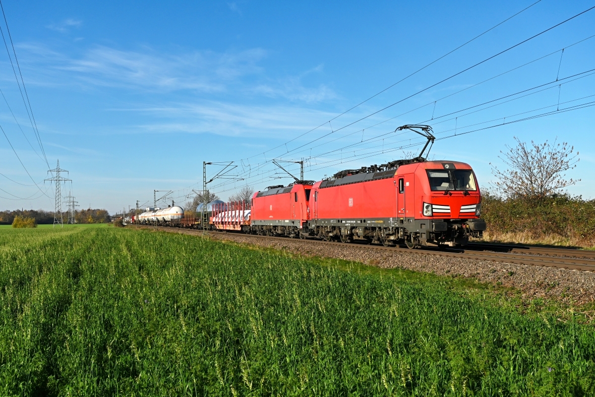 Dto. 193 303-5 am 19.11.2022 bei Bückeburg (HBKB) mit Wagenlok 185 301-9 und