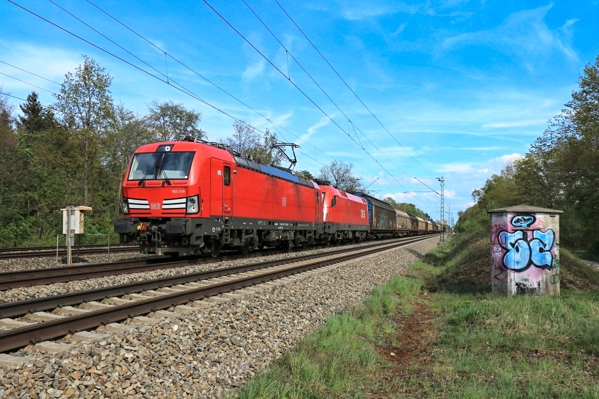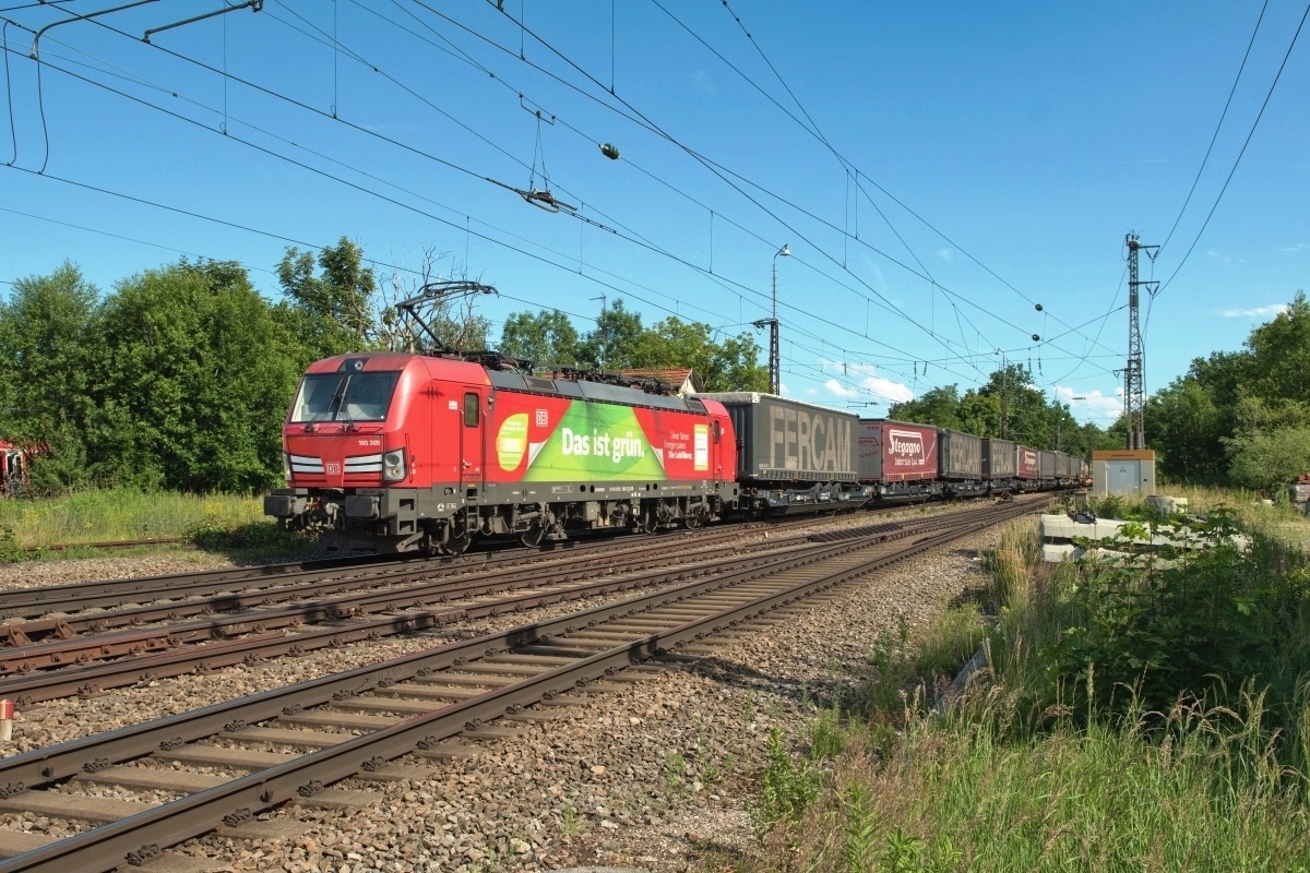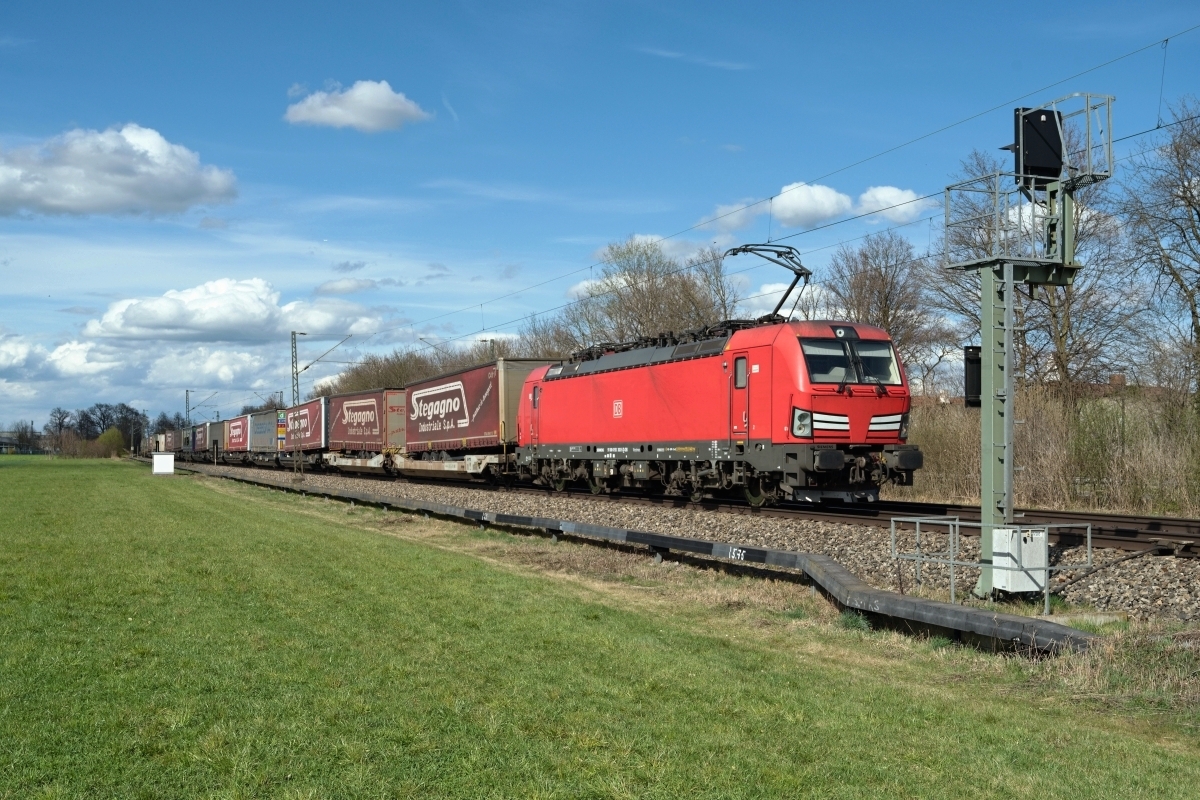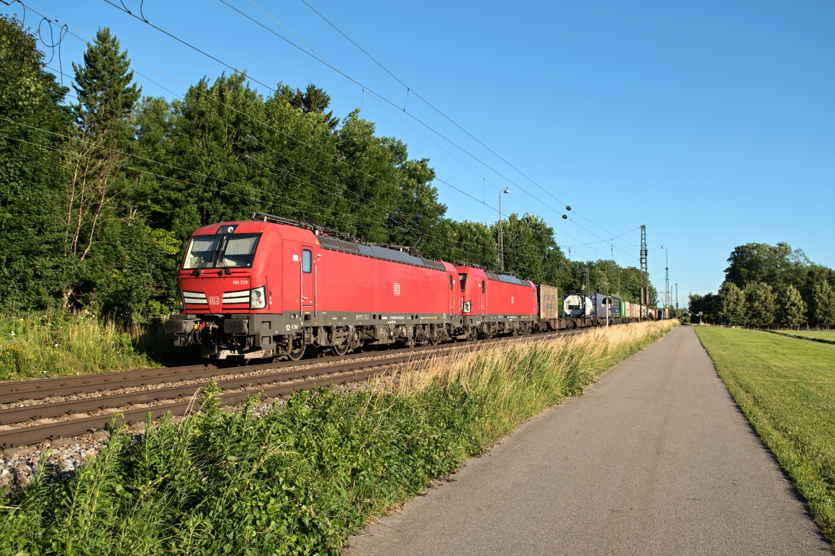 D-DB) und einem CT_Zug am Haken bei Vaterstetten (MVS) Rtg.
