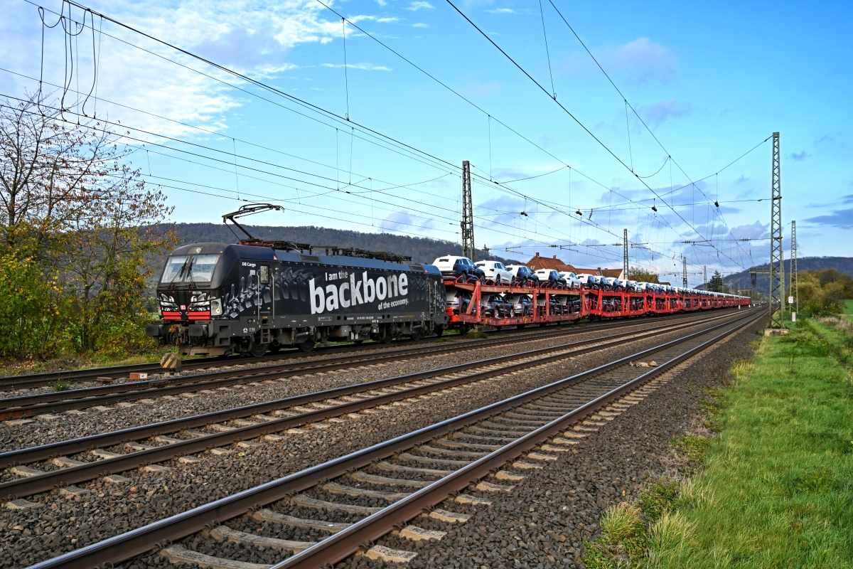 war hier am 15.11.2018 bei Retzbach-Zellingen (NREZ) mit einem CT-Zug Rtg.