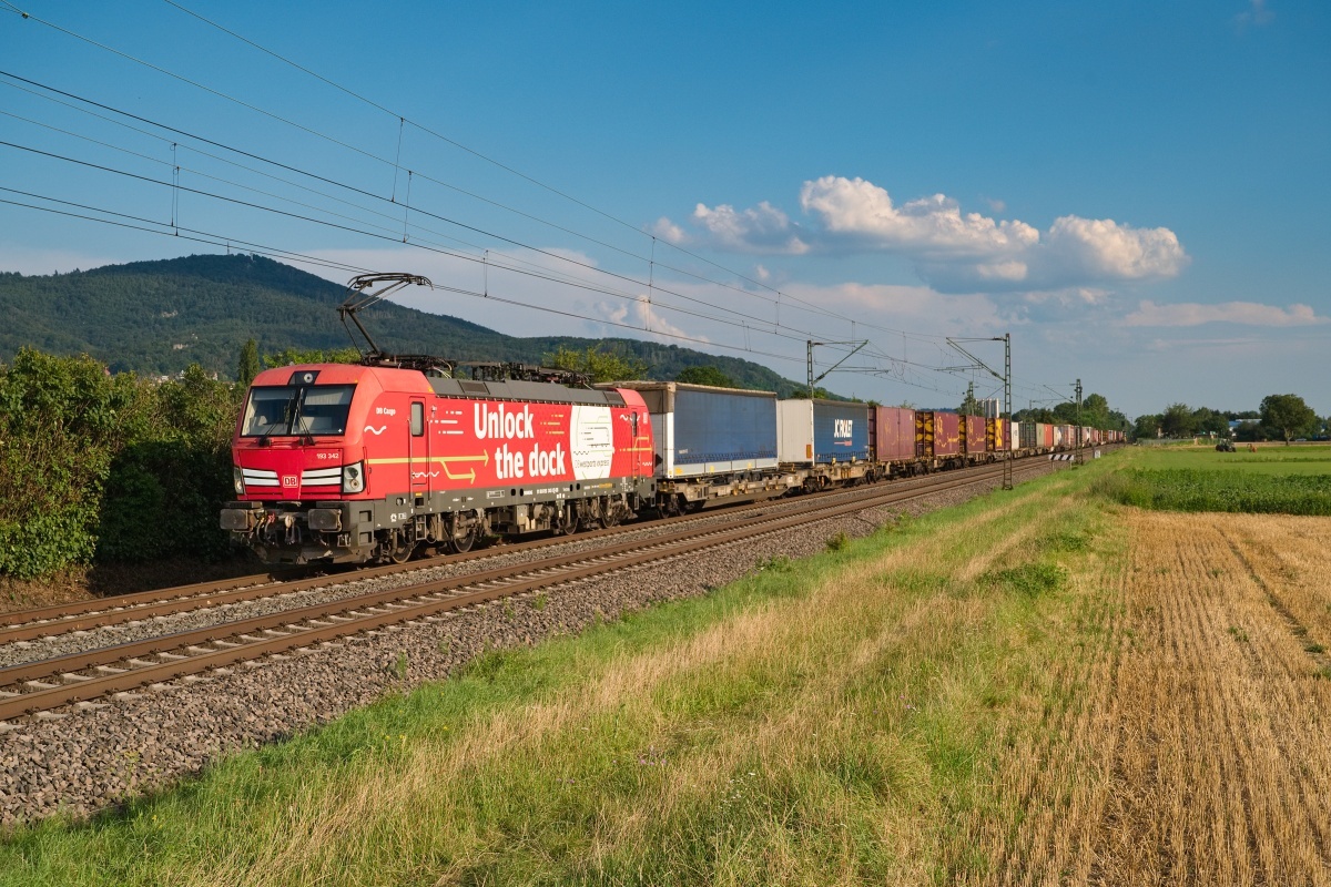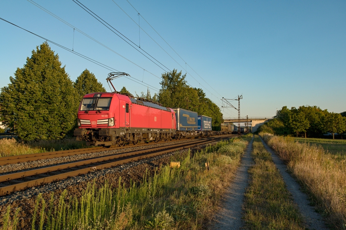 Dto. 193 302-7 am 18.07.2024 als Tfzf im Abendlicht bei Bickenbach (FBI)