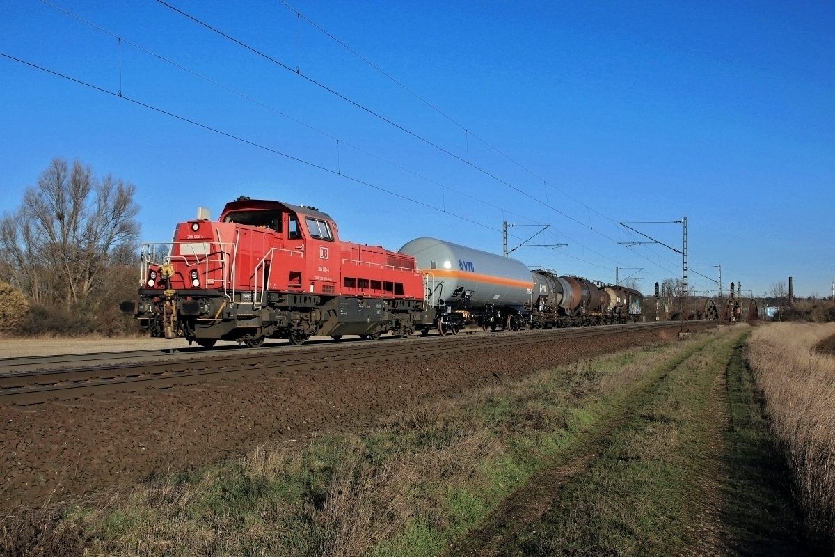 26.02.2019. Hier war die Lok bei Dedensen-Gümmer (HDED) mit einem H-Wagenzug Rtg. Wunstorf