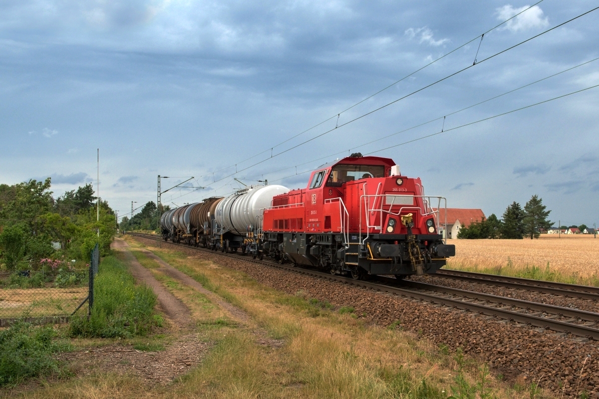 Dto. 265 013-3 am 09.07.2020 bei Glaubitz (DGLA) mit dem Übergabegegenzug