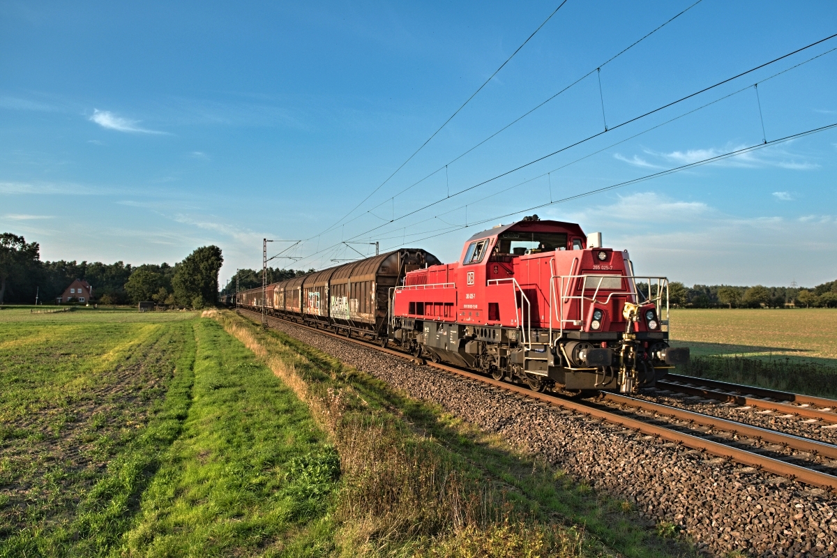 Dto. 265 025-7 am 15.09.2020 im Abendlicht bei Rohrsen (HROR) mit der