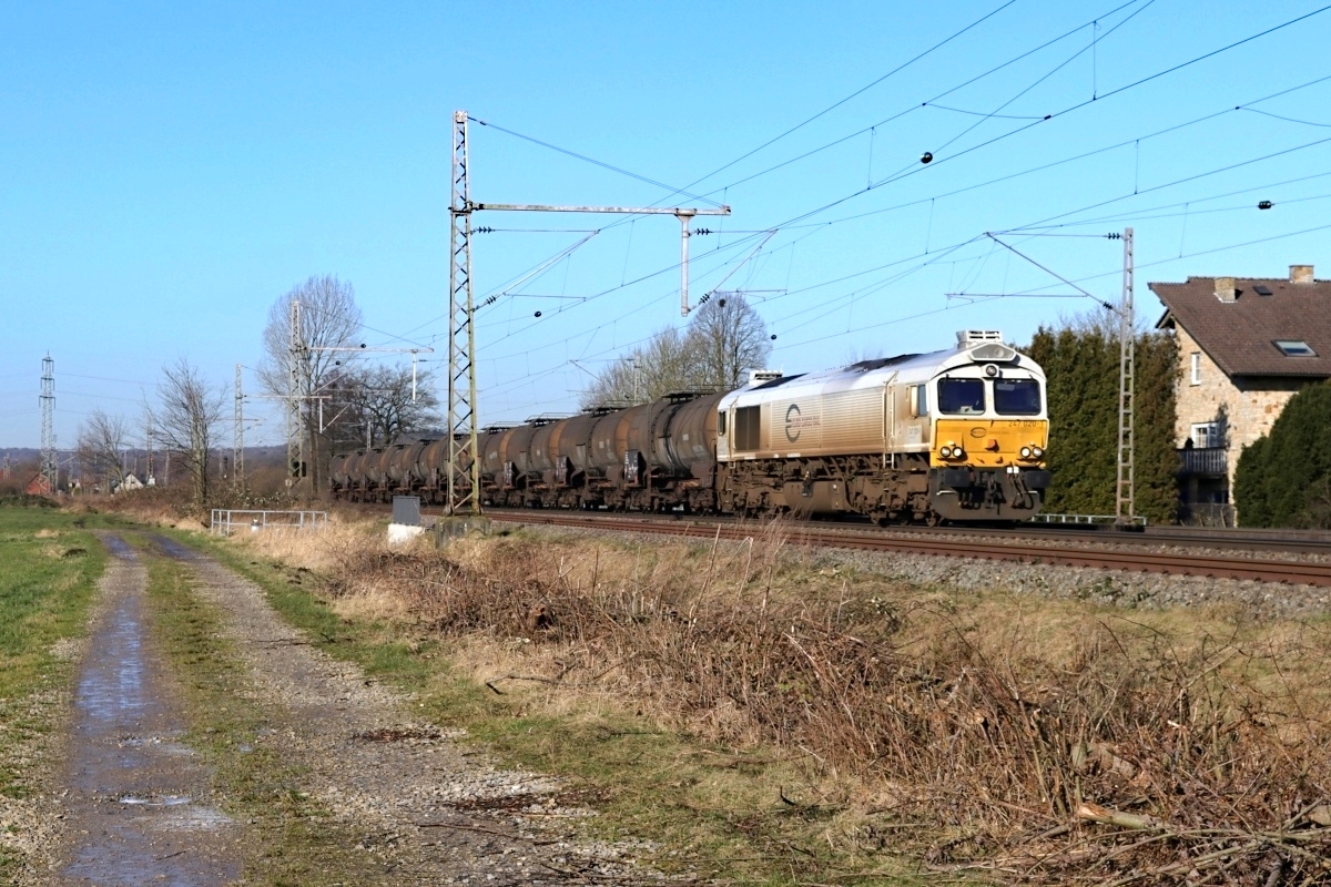 020-1 am 13.02.2018 mit einem kurzen Kesselwagenzug bei Wissingen Rtg.