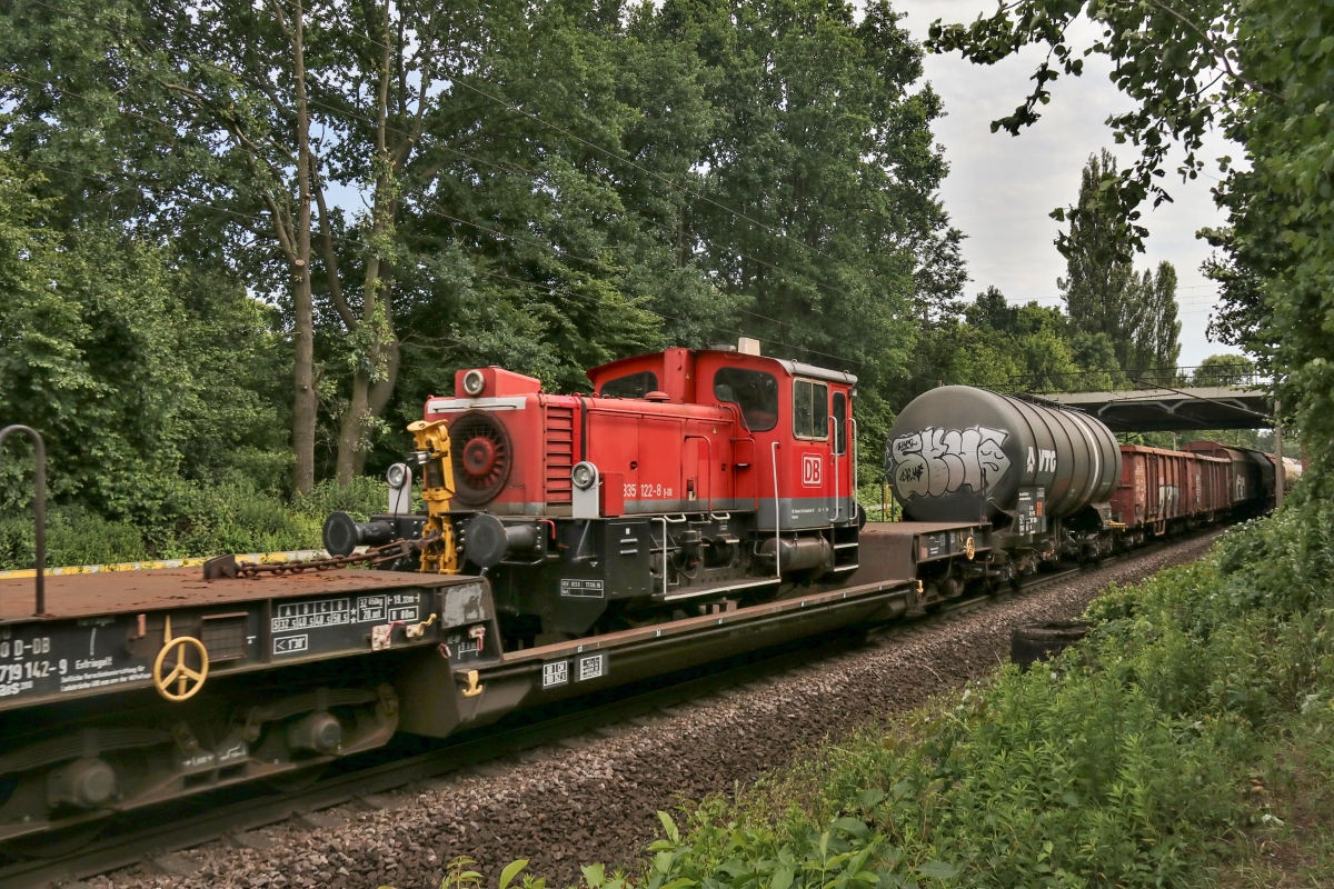 335 122-8 (NVR: 9880 3 335 122-8 D-DB) am 27.06.2017 Hannover-Ahlem huckepack auf einem Uais200 Transportwagen (80 80 9719 142-9) für Köf III Rtg. Osten/Linden-Fischerhof passierend... Dto. ...
