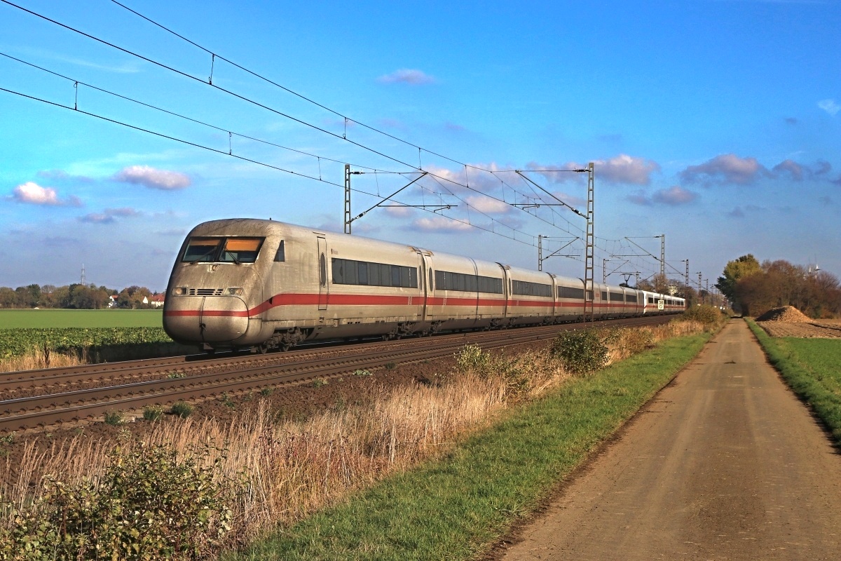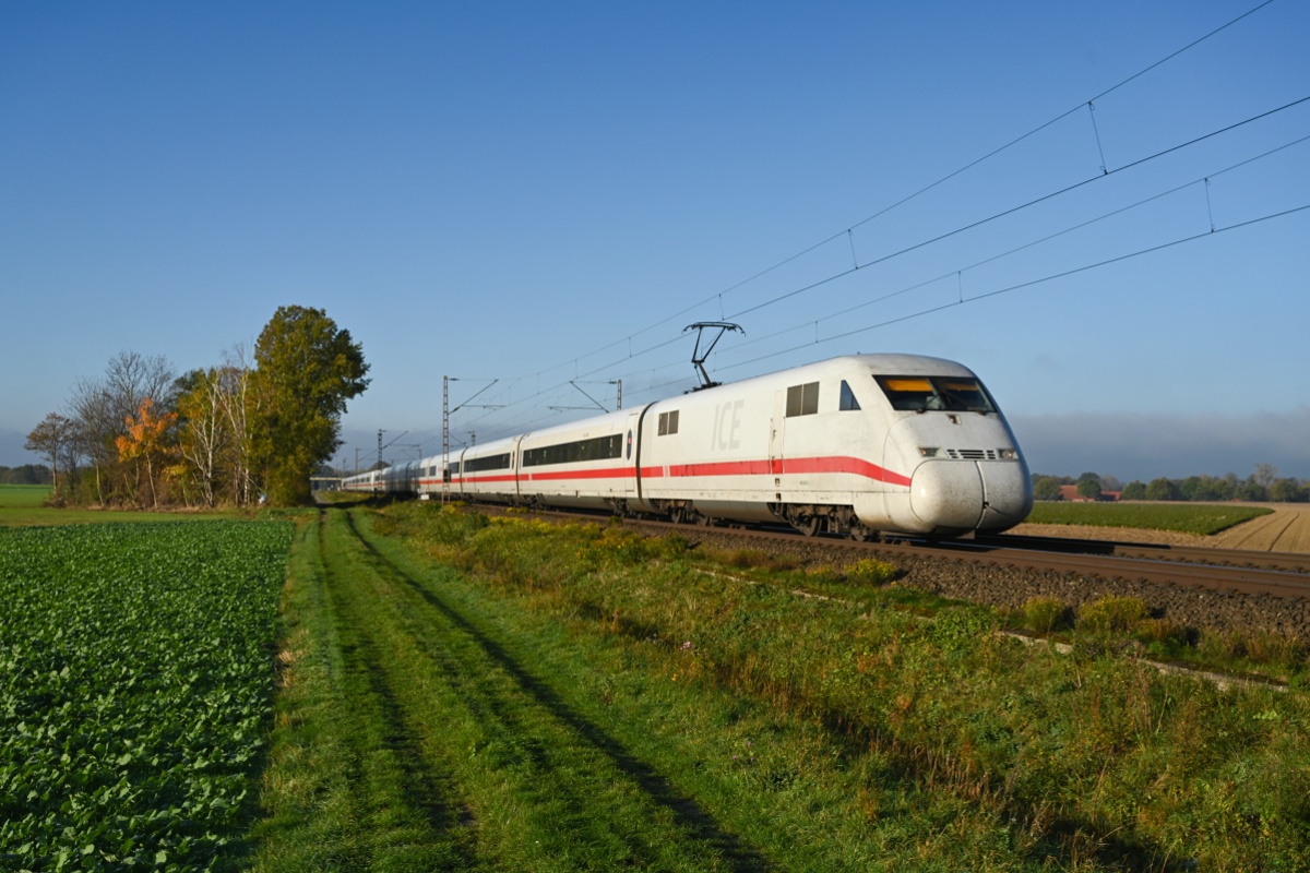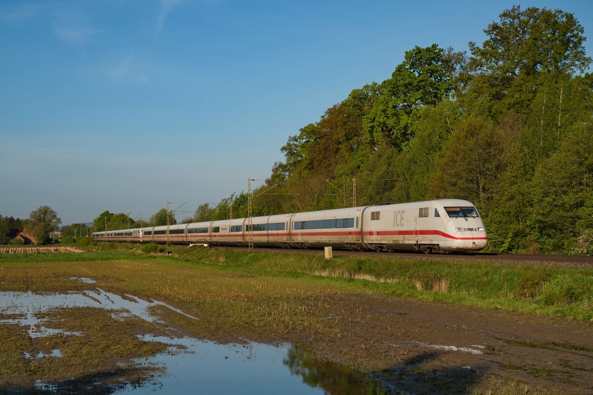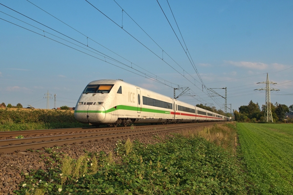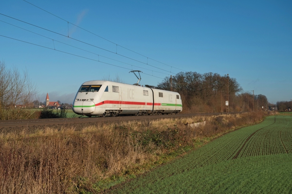 der Morgensonne bei Eilvese (HEIV) als ICE 533 von Oldenburg Hbf nach