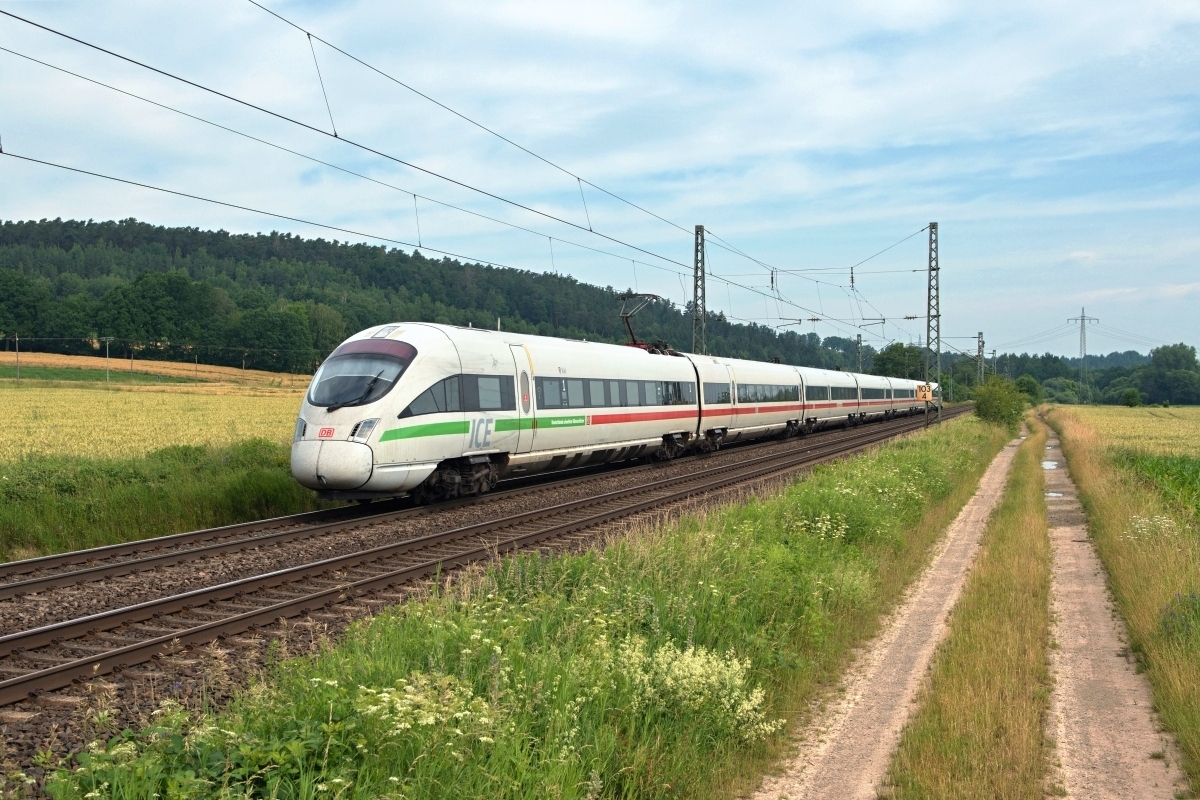 Dto. 411 001-1 am 04.06.2021 bei Bückeburg (HBKB) Evesen als ICE 1548