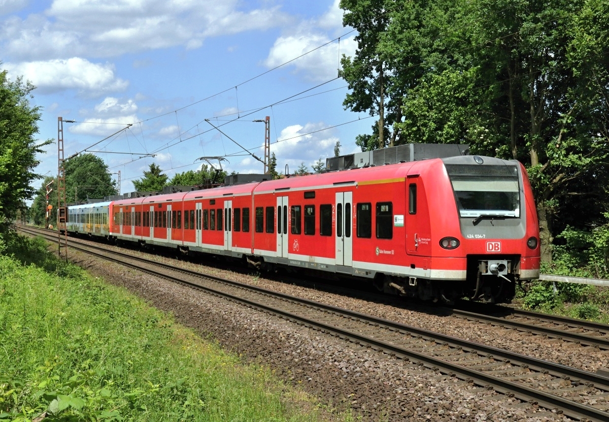 unterwegs. Beim zweiten Triebzug im Verbund handelte es sich um 424 034-7.