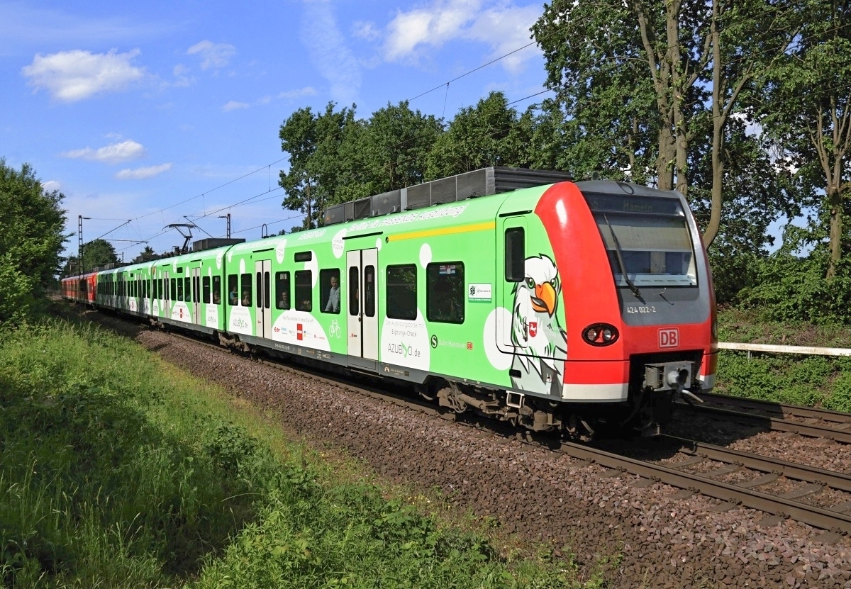 am 15.05.2019 mit 424 509-8 bei Bückeburg als S1 über Hannover Hbf nach