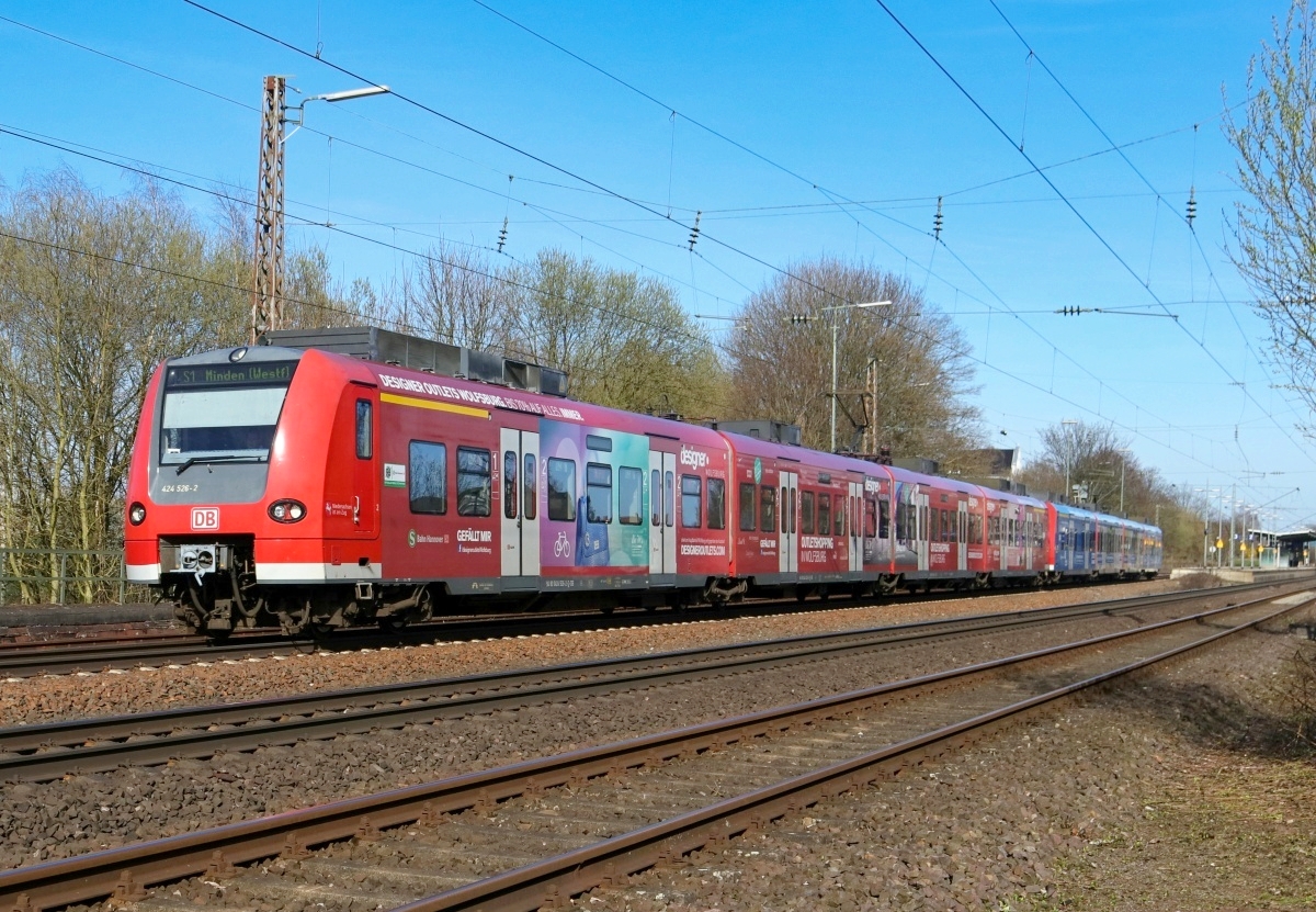 (HBKB). Hier war der Zug als S1 mit 424 528-8 von Haste nach Minden