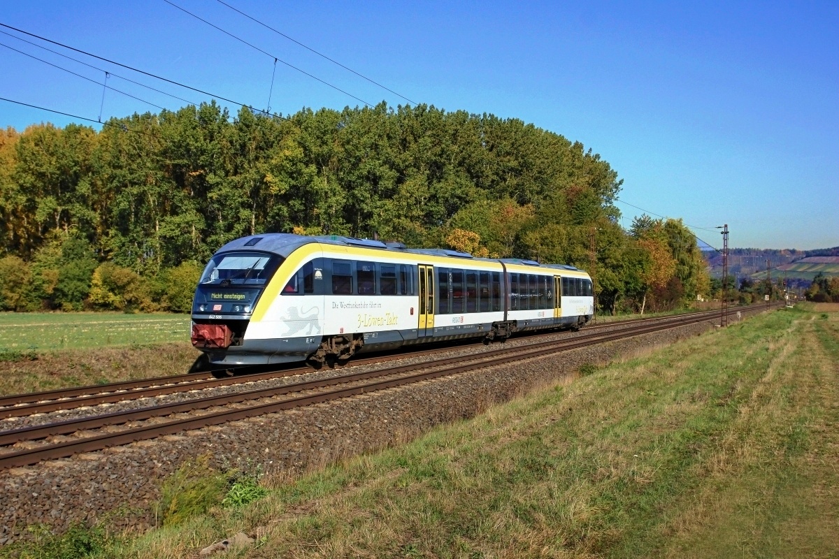 hier am 11.10.2018 bei Retzbach-Zellingen (NREZ) südwärts/Würzburg Hbf unterwegs...