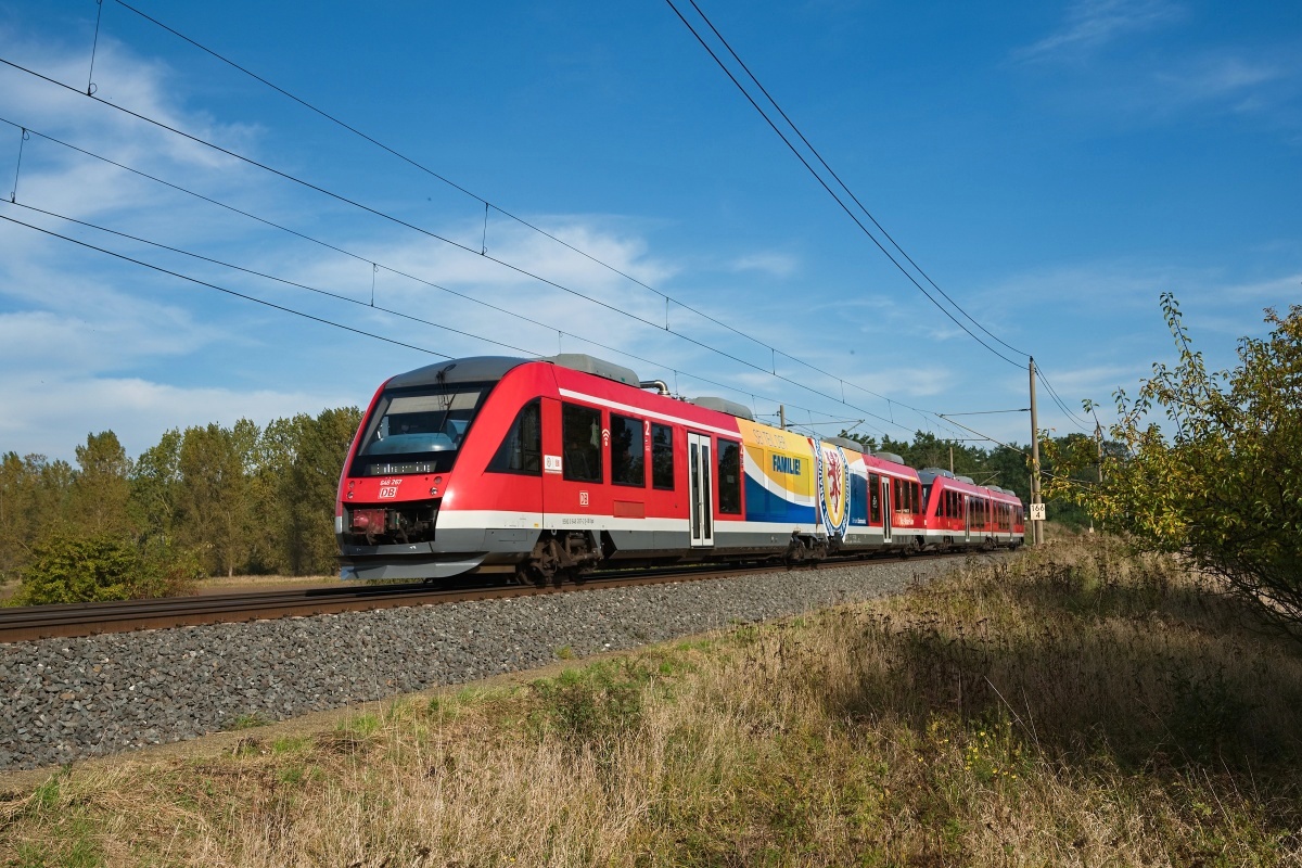 Rtg. Osten/Magdeburg-Sudenburg (LMS) unterwegs. Der führende Triebzug war