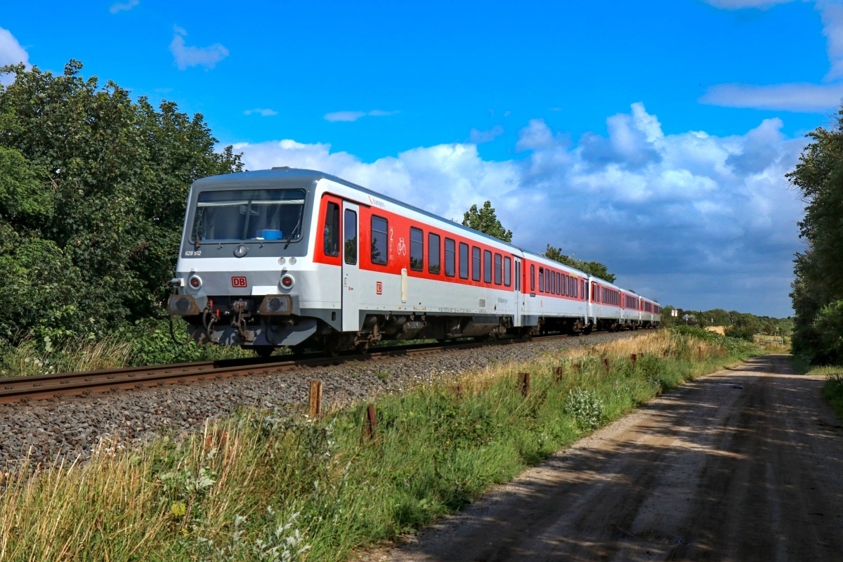 Hier war ein 628er Trio am 06.07.2019 im Nachschuss bei Tinnum (Sylt)