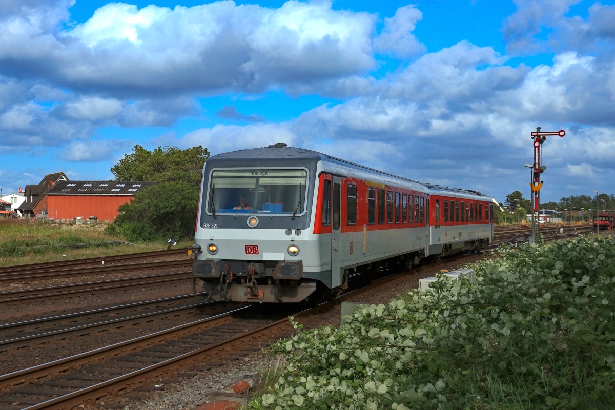 Richtung Niebüll unterwegs. Der Zug bestand aus: (628 521-6--928 521-3)