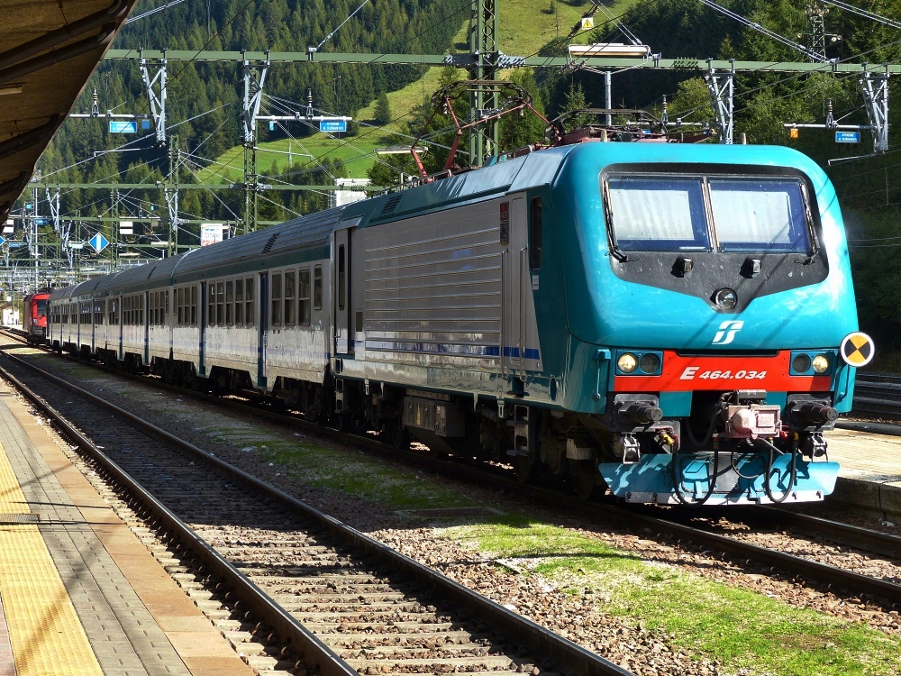 Garnitur (NVR: 91 83 2464 034-4 I-TI) Die Lok in der Seitenansicht... ...Sowie der Steuerwagen