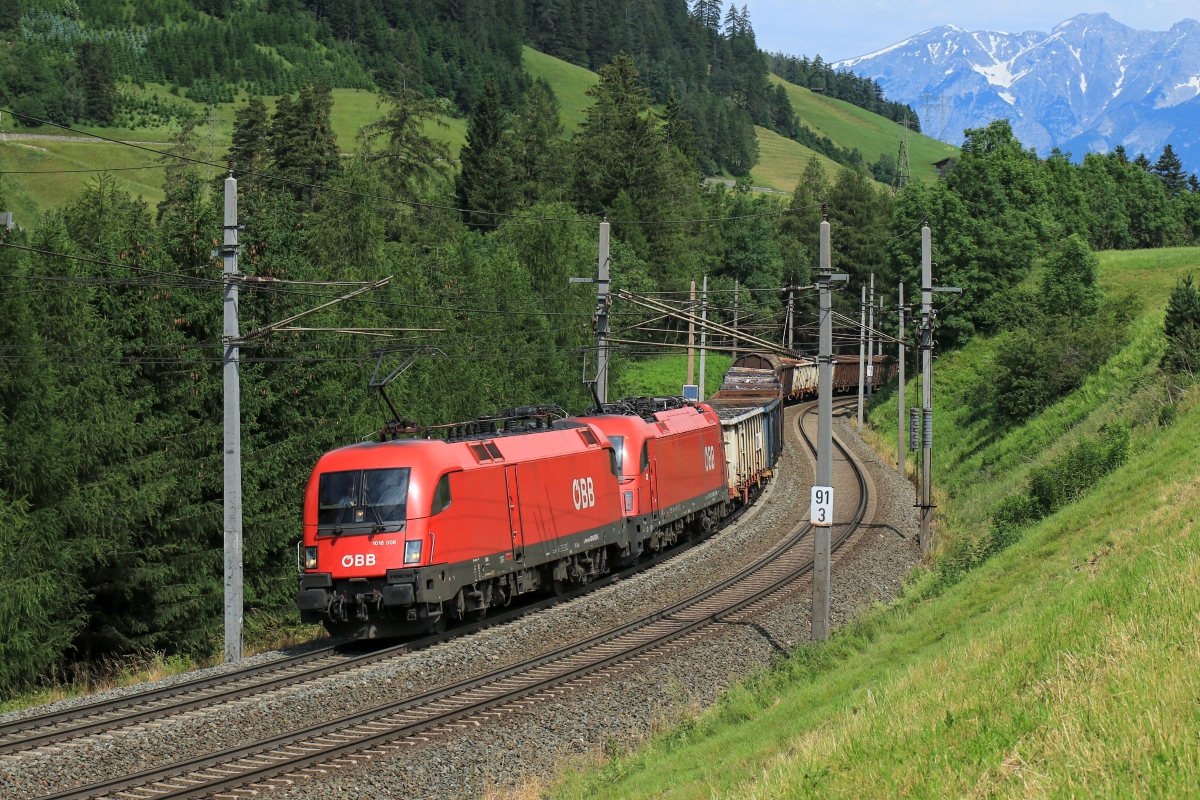 9181 1016 035-8) war hier am 20.06.2019 auf der Brenner-Bahn kurz vor