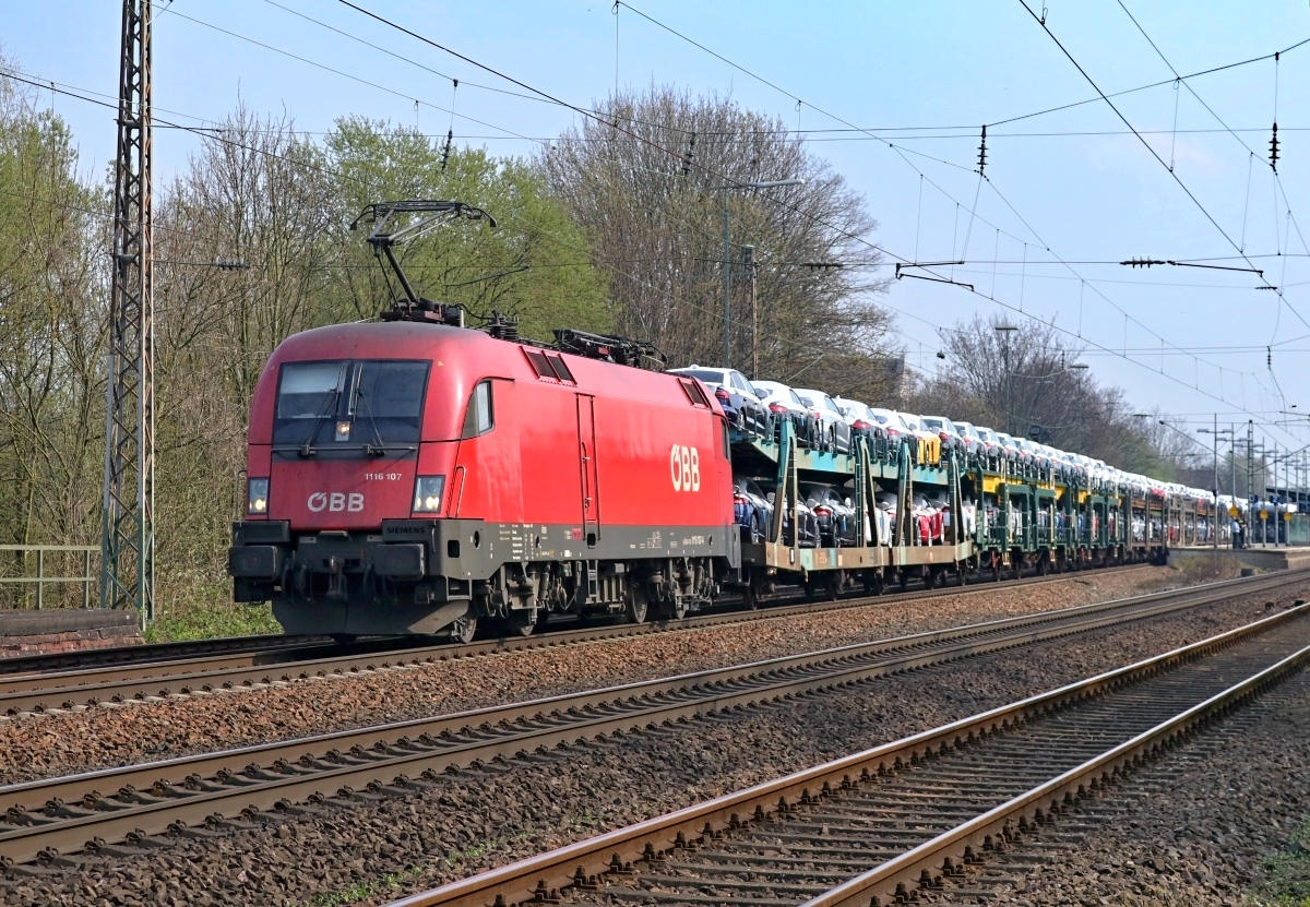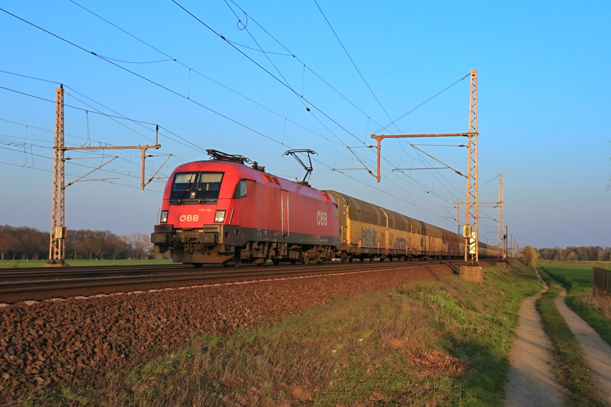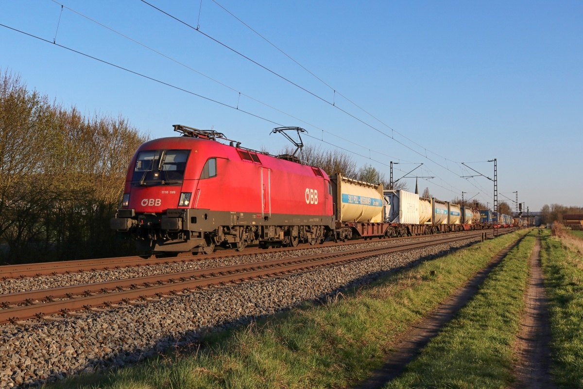 Dto. 1116 122-3 am 10.04.2018. Hier war die Lok mit einem KLV/CT-Mix bei