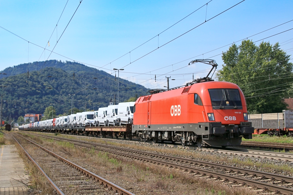 einem voll beladenen STVA Autozug Rtg. Bruck an der Mur (XABM)...