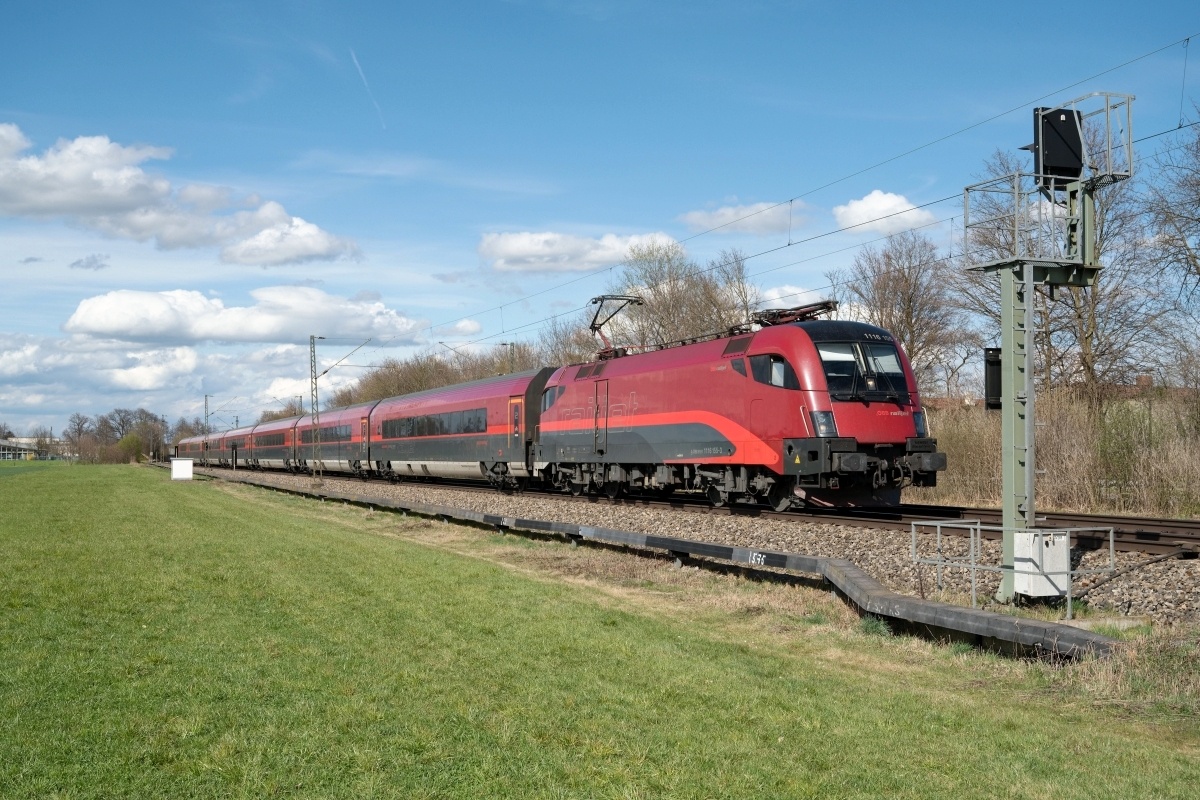 Dto. 1116 122-3 am 07.04.2018. Hier passierte die Lok Harrbach im Maintal