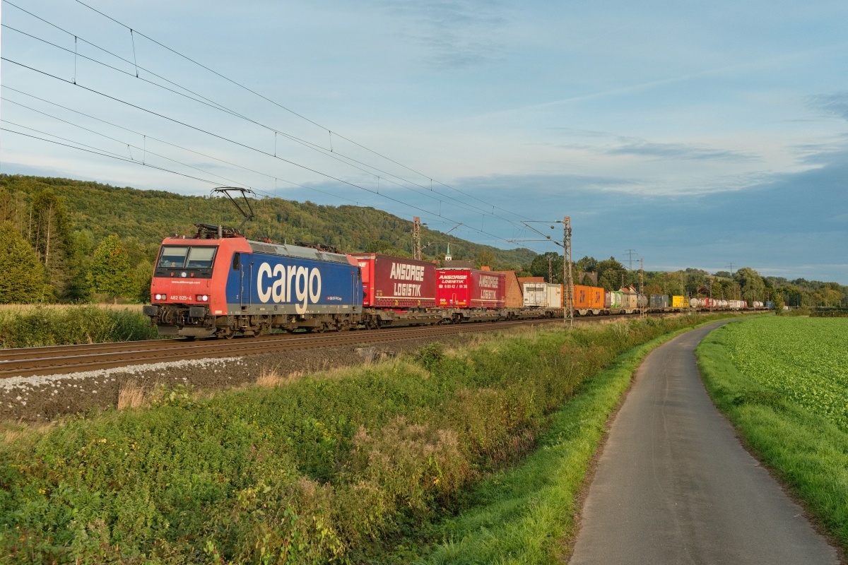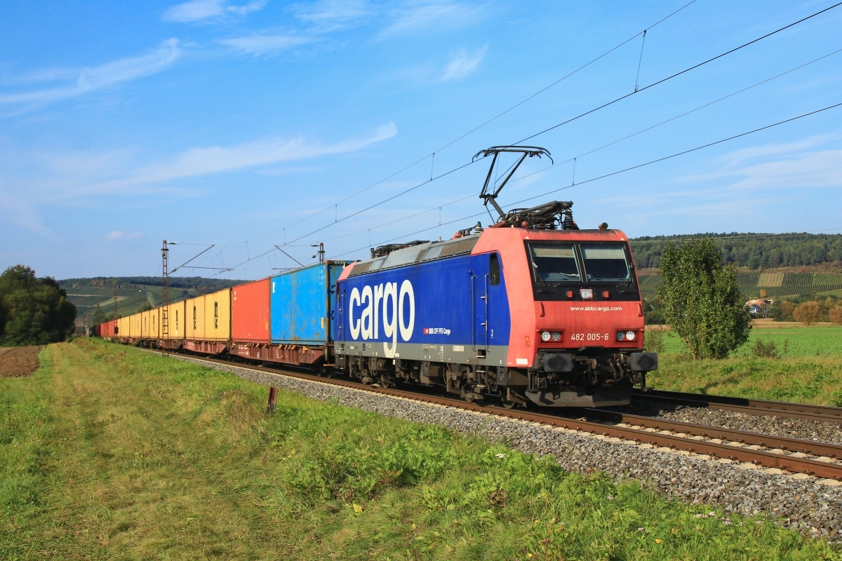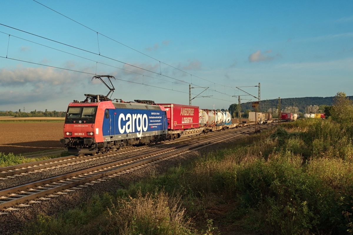 Dto. 482 038-7 passierte hier am 22.09.2017 Harrbach (NHRB) im Maintal mit einem CT-Zug Rtg.