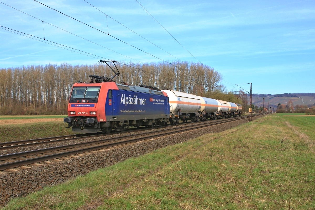 Dto. 482 049-4 am 07.04.2018 bei Thüngersheim (NTHM). Hier war die Lok mit einem