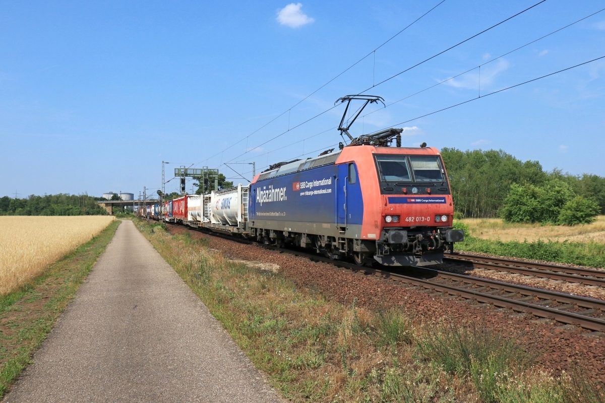 Dto. 482 013-0 am 17.07.2018. Hier passierte die Lok Waghäusel (RWG) mit
