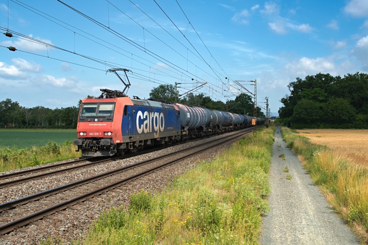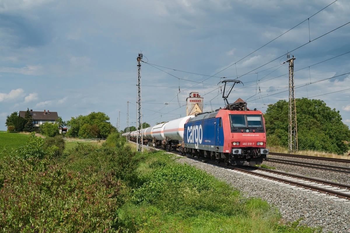 482 007-2 (NVR: 91 85 4482 007-2 CH-SBBC) war hier am 16.07.2019 bei Waghäusel (RWG) mit einem Kesselwagenzug