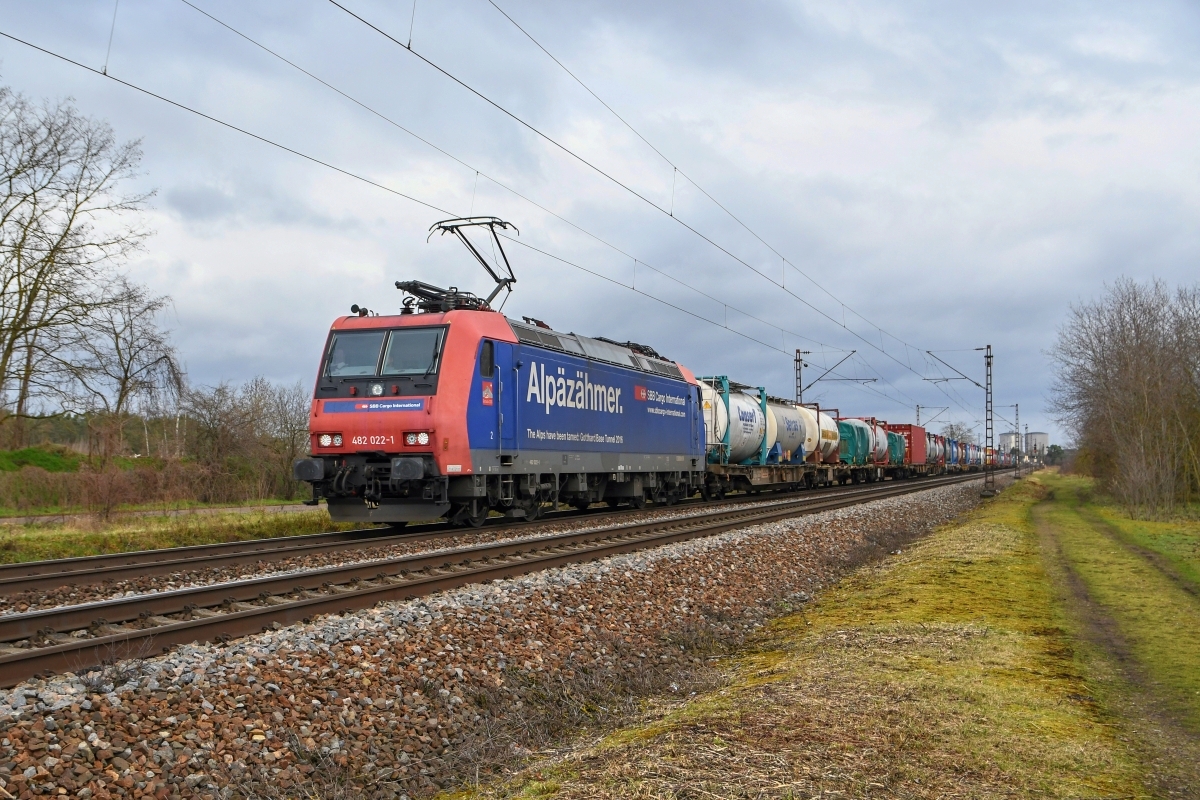 Dto. 482 011-4 am 13.02.2020. Inzwischen läuft die Lok ohne seitliche