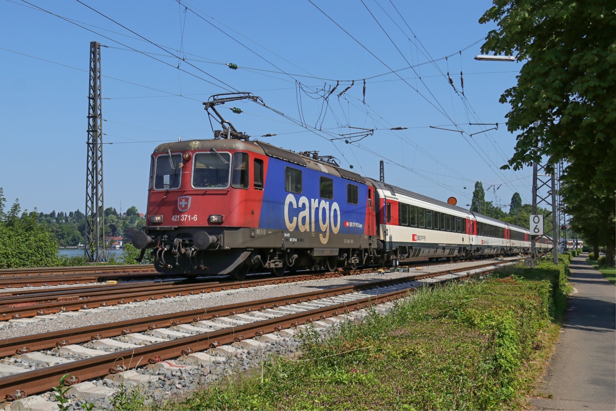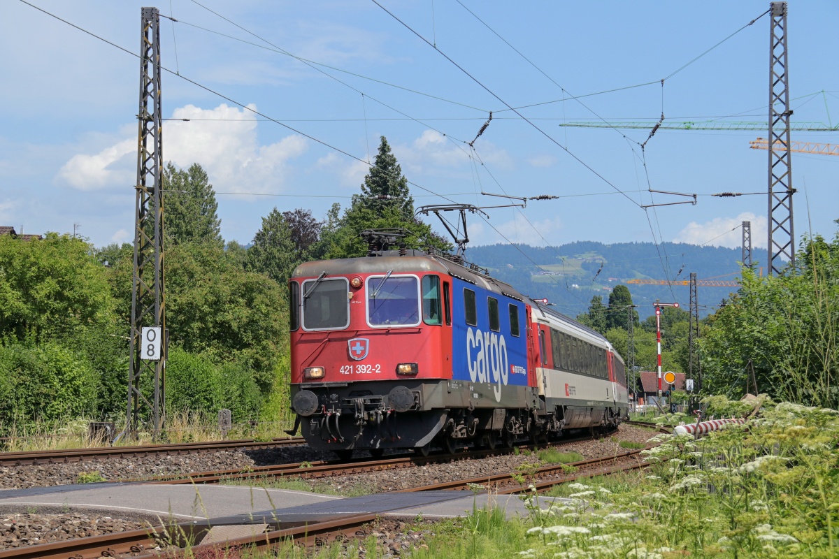 Dto. 421 392-2 am 08.07.2017. Hier kommt die Lok mit dem EC 196 von Zürich