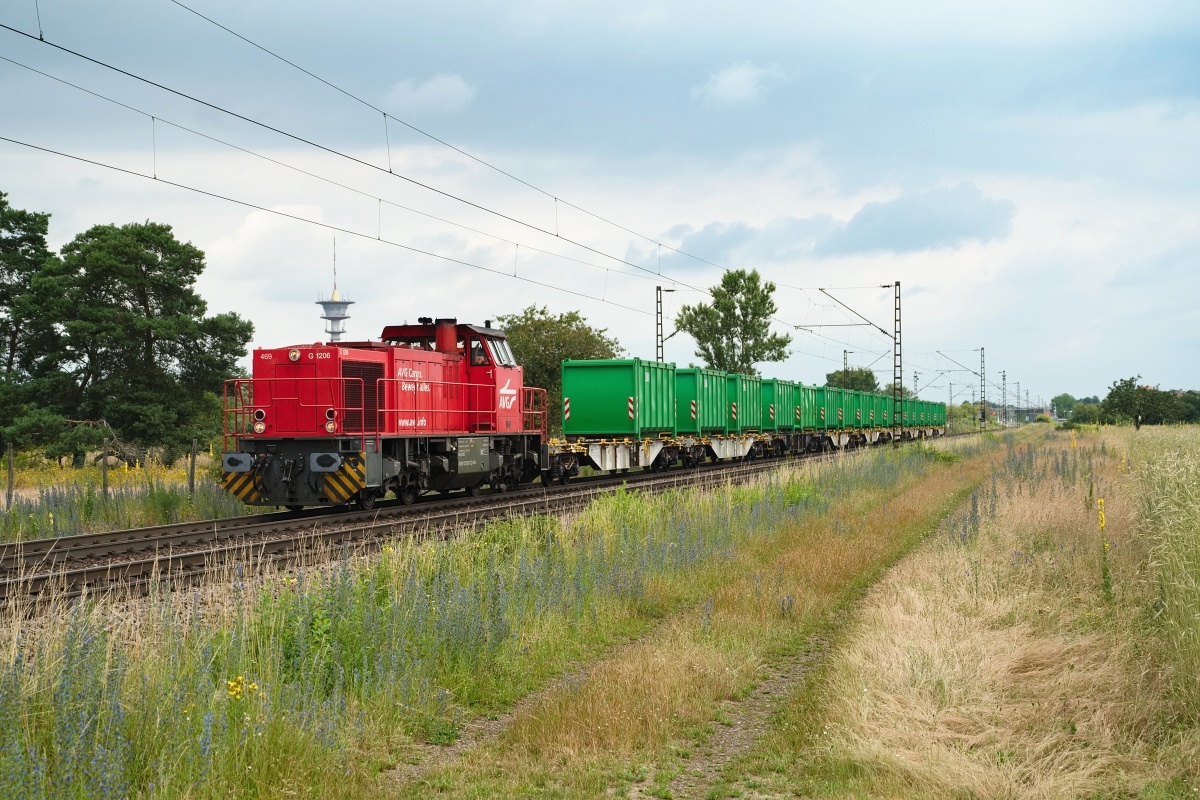 war hier am 28.06.2024 bei Wiesental (RWI) mit einem Müllzug Rtg. Süden/Graben-Neudorf