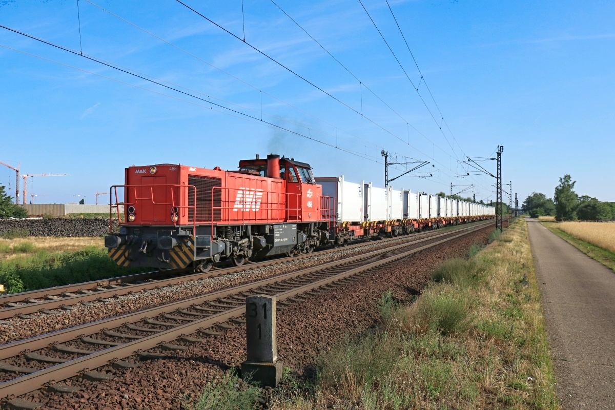 war hier am 16.07.2019 bei Waghäusel (RWG) mit einem Müllzug Rtg.