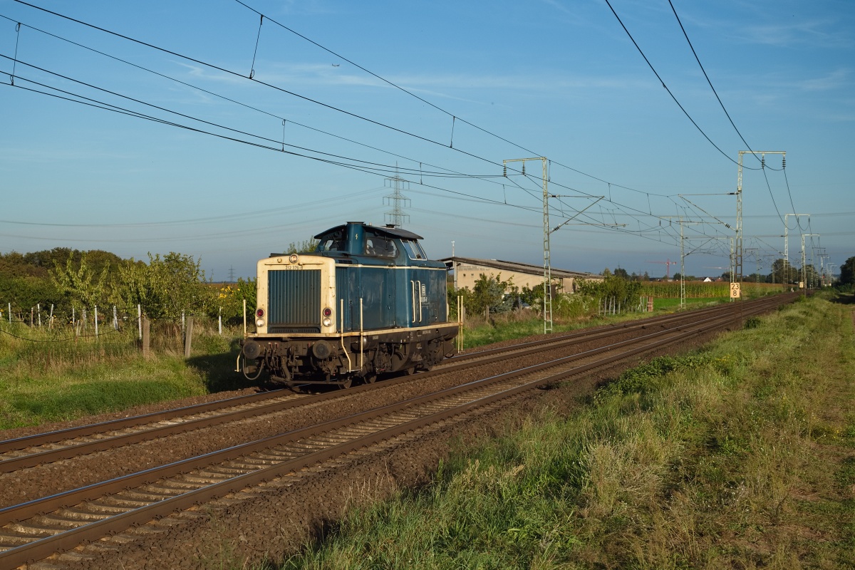 durchfuhr die Lok mit einem kleinen, unbeladenen Gleisbauzug Seelze West Richtung