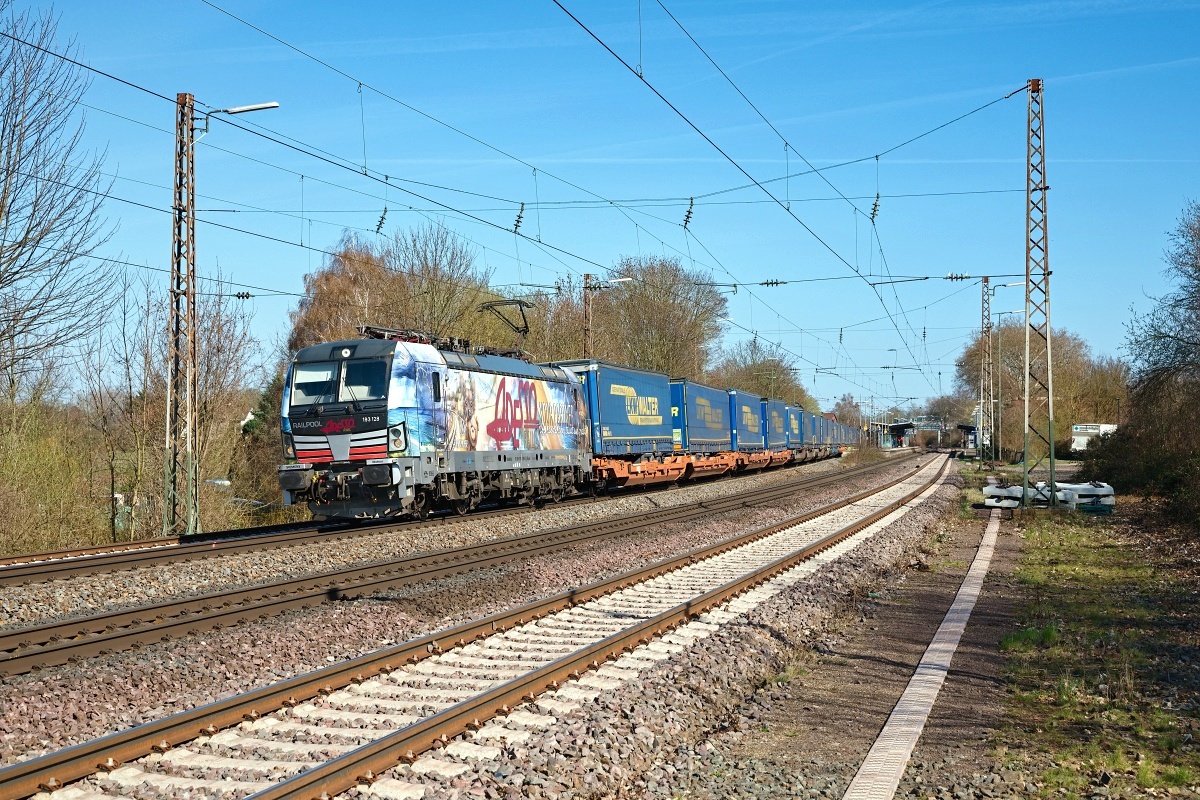 193 128-5 (NVR: 91 80 6193 128-5 D-Rpool) war hier am 18.03.2026 im Bückeburger Bf (HBKB) dem Walter KLV DGS 43946 von Terminal Wien Freudenau Hafen nach Wanne Eickel unterwegs...