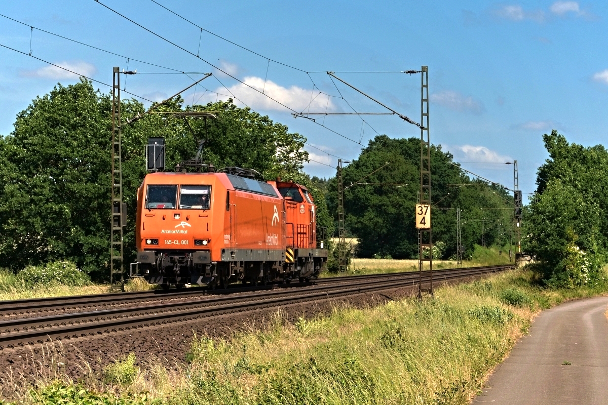 Dto. 145 081-6 als Tfzf am 14.06.2023 bei Eilvese (HEIV). Hier war die Lok