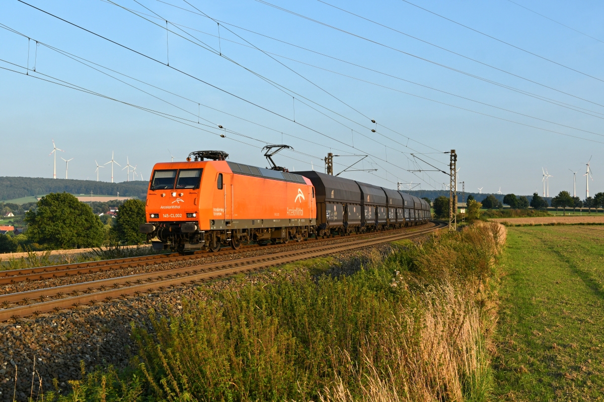 Dto. 145 082-4 am 22.09.2021 im Abendlicht als Umleiter bei Benhausen (HBNS)