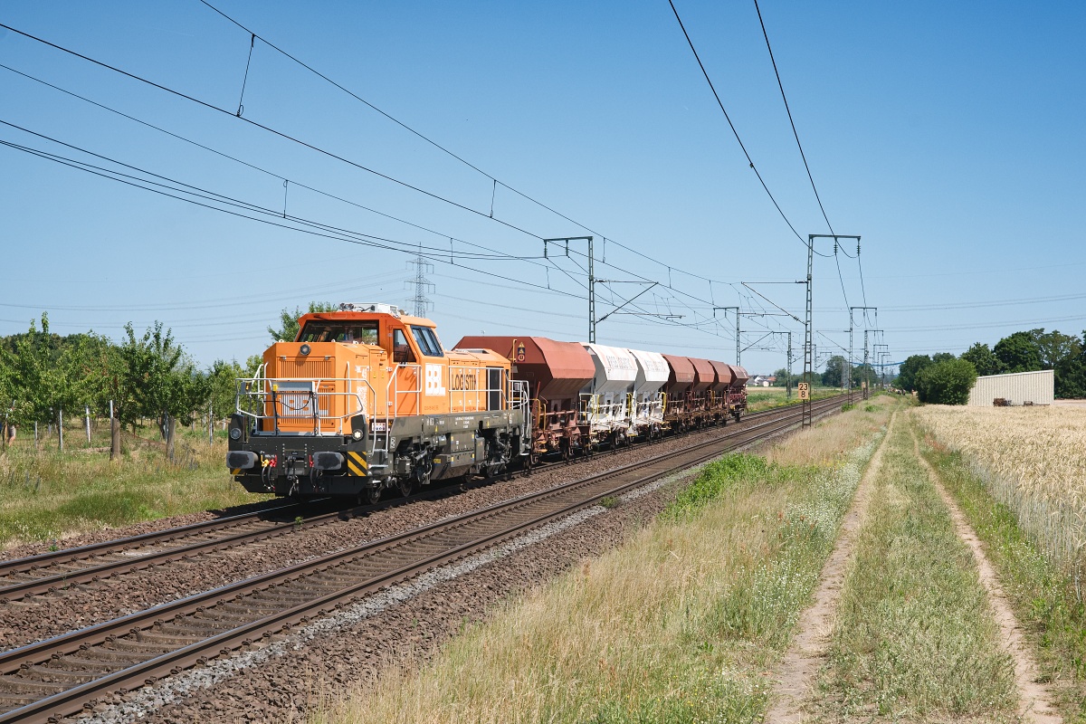 war hier am 21.06.2025 bei Klein-Gerau (FKGE) mit dem Schotterwagen DGV