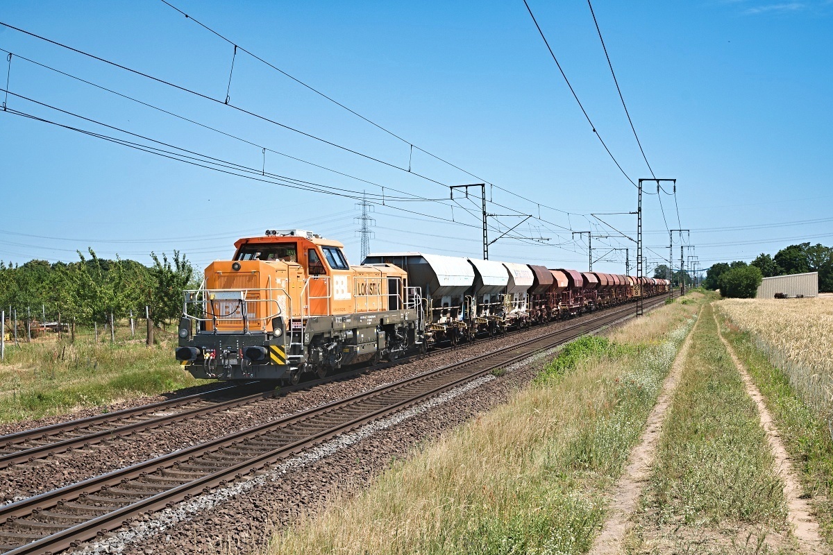 war hier am 21.06.2025 bei Klein-Gerau (FKGE) mit Schotterwagen Rtg.