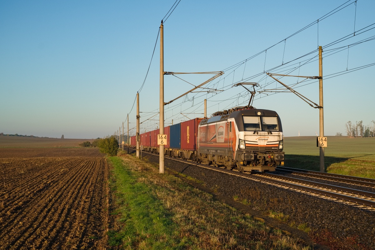 in der Magdeburger Börde mit einem Containerzug Rtg.
